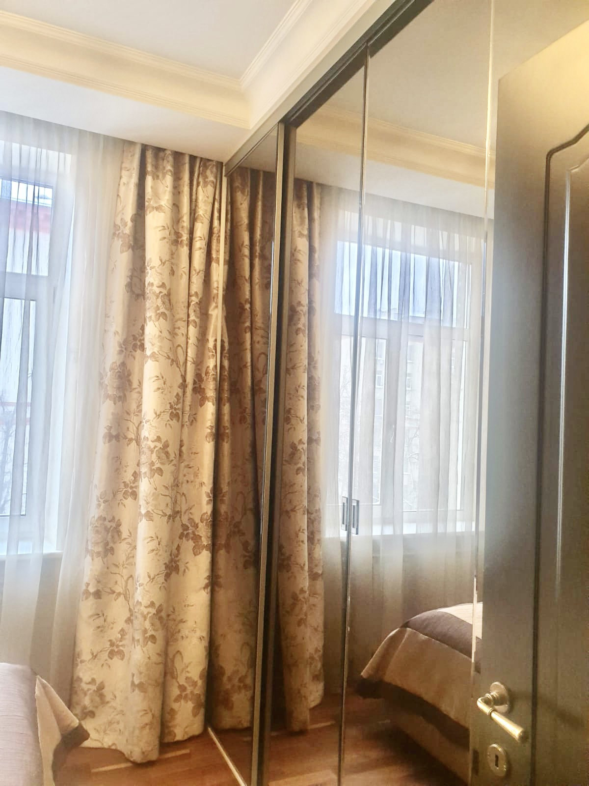г.п. Тихий, зелёный, закрытый двор, 5 мин пешком ст. МЦК Зорге и метро Октябрьское Поле. Квартира угловая, окна на две стороны, 5 этаж без лифта. Был сделан дизайнерский ремонт с перепланировкой: дубовые и гранитные полы, зеркальные стены, гранитная и мраморная столешницы на кухне и в ванной, 2 с/у. Все коммуникации заменены. Очень