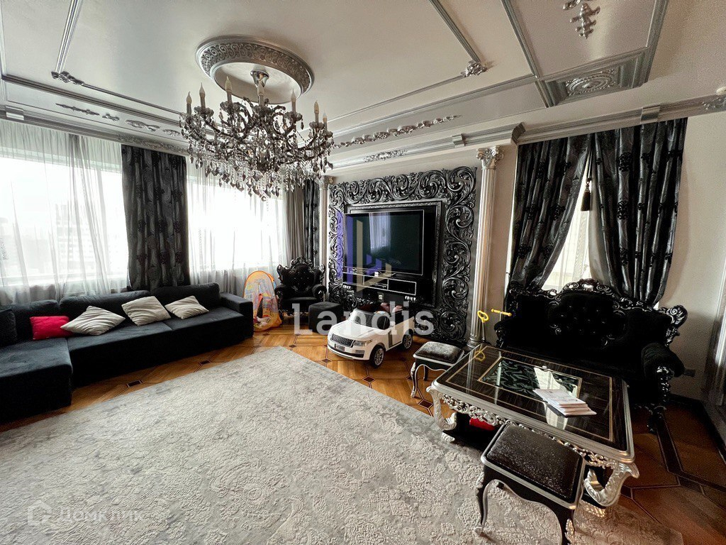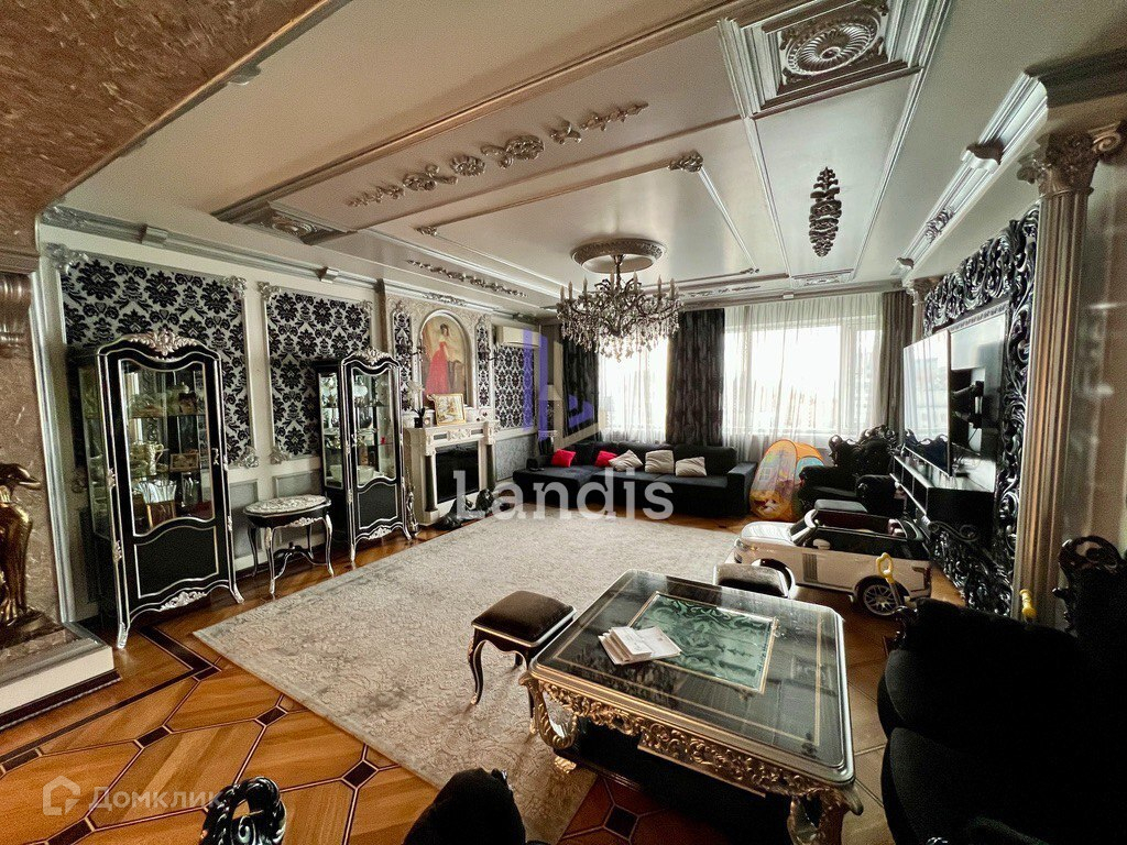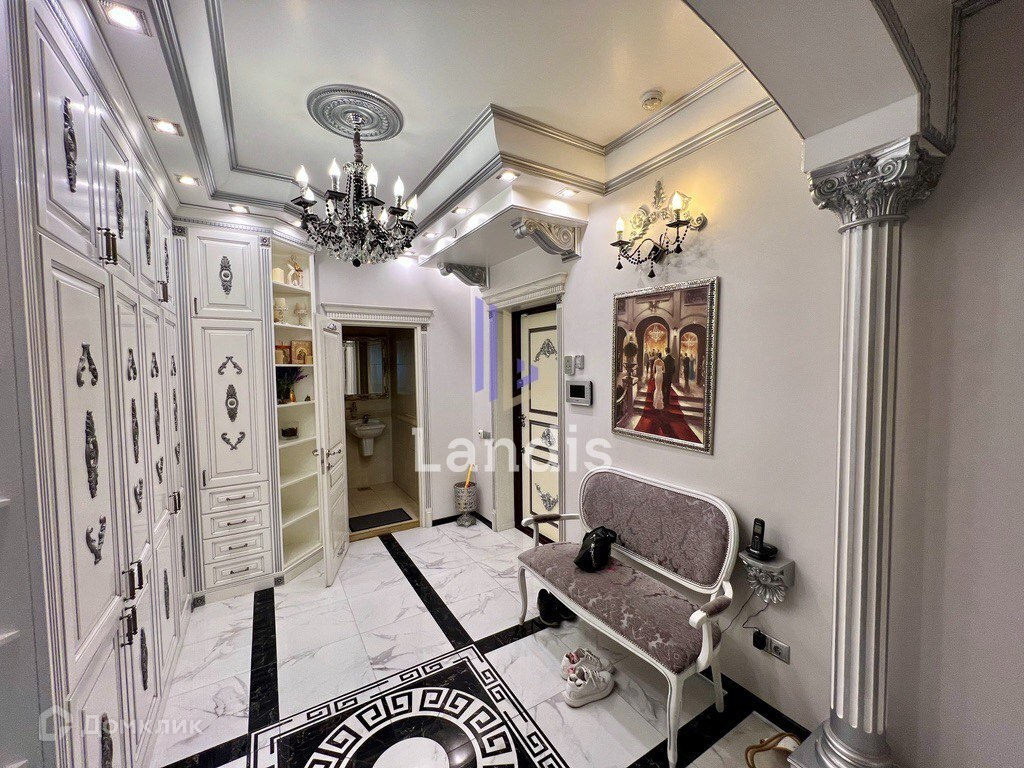Общая площадь квартиры составляет 175,6 м2. Просторная кухня-гостиная с панорамными окнами, три изолированные спальные комнаты с собственными гардеробными, санузлами. Большая кладовая комната разделенная на гардеробную и постирочную зоны. Ремонт выполнен из дорогостоящих и высококачественных материалов.