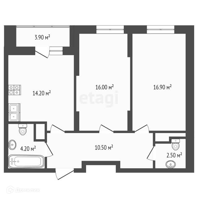 1) Двухкомнатная квартира с отделкой от застройщика