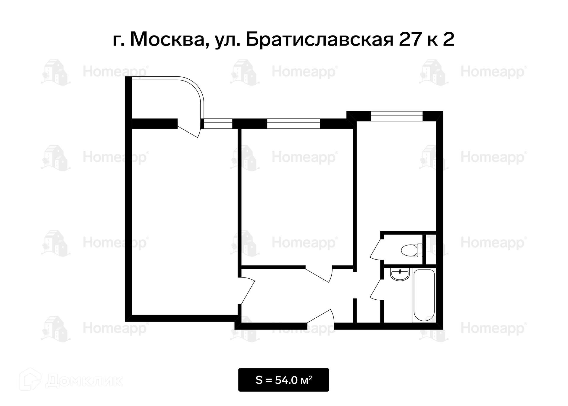 2-комнатная квартира, 53.8 м2, этаж 10 / 16, на продажу в Москве, Братиславская улица, 27к3