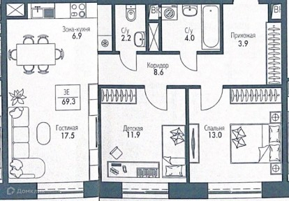 Общая площадь 69.4 м2