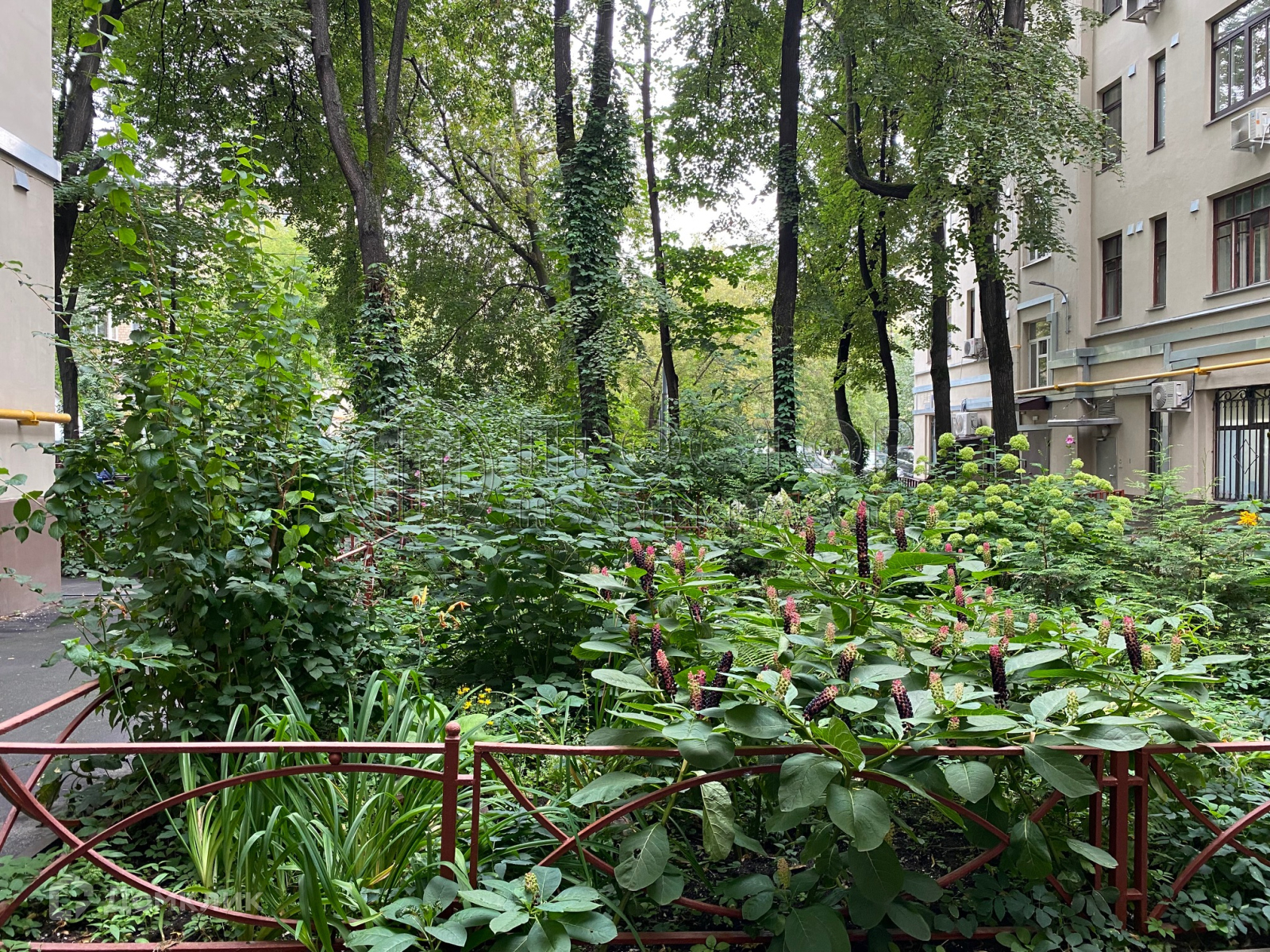 Очень зеленый и тихий двор.