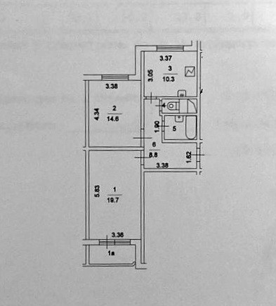 Жилая площадь 34.3 м2