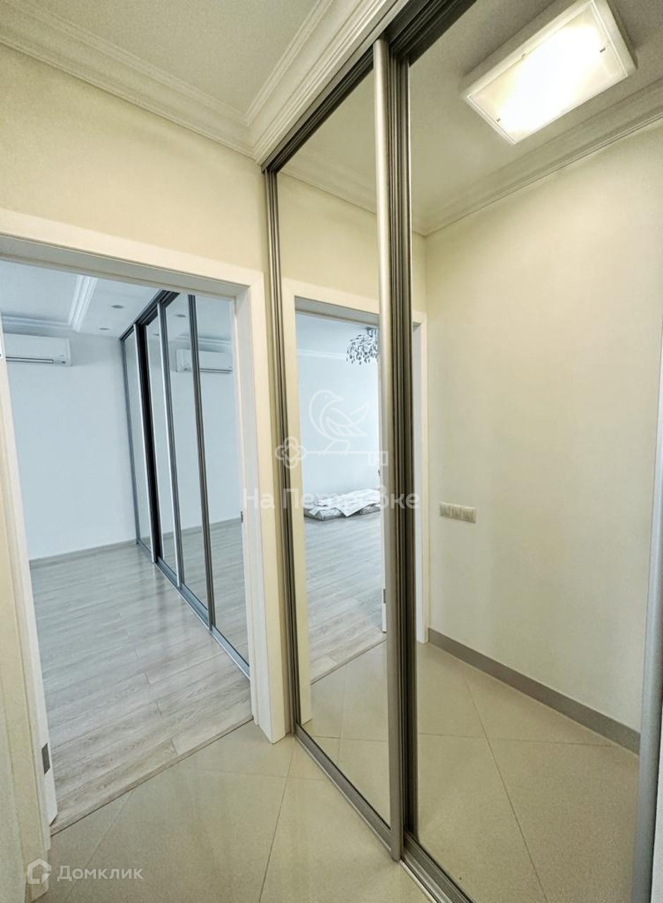Кухня полностью оборудована новой встроенной красивой мебелью и новой бытовой техникой. Установлен кондиционер. Встроенные вместительные шкафы от пола до потолка в мастер спальне и прихожей.