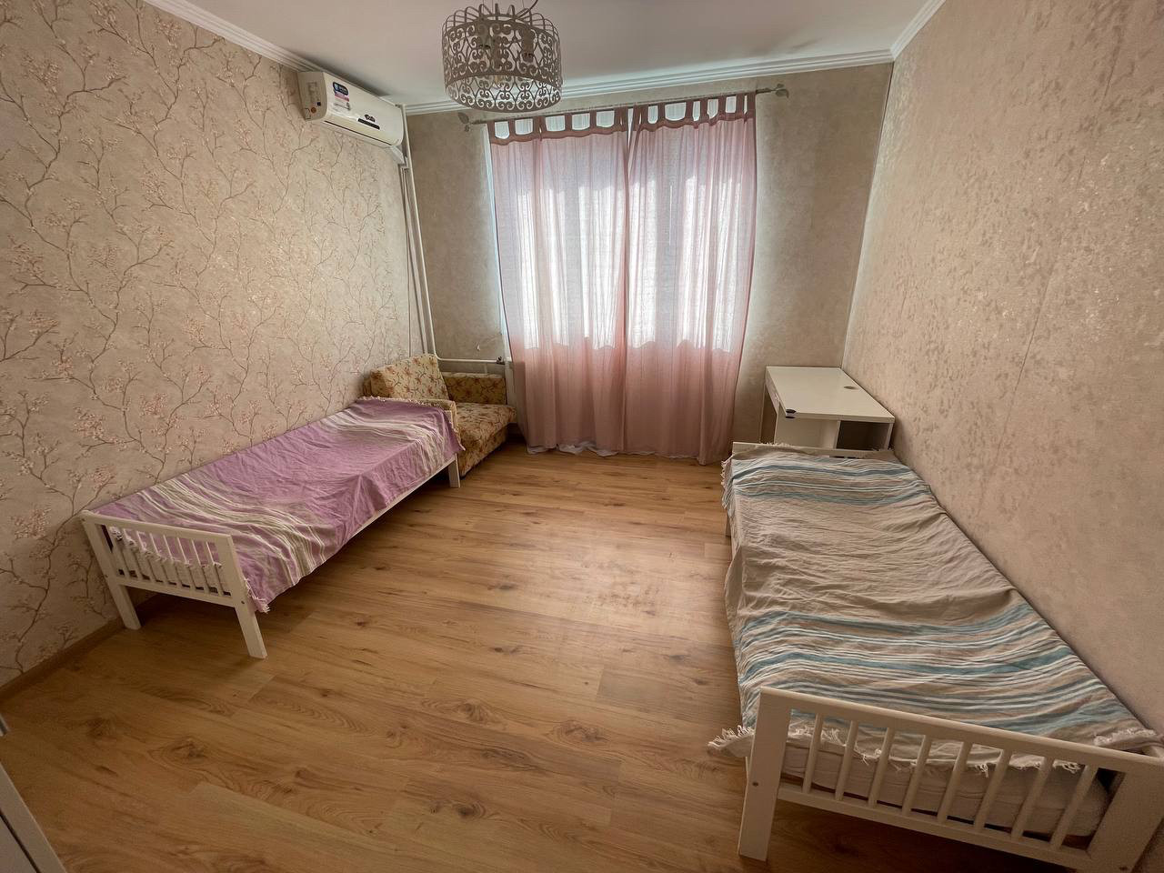 Просторная кухня. Раздельный санузел в плитке до потолка. Пластиковые окна. Застекленный балкон. На полу ламинат и плитка. Кондиционер в каждой комнате. Замечательный район с прекрасный инфраструктурой и развитой транспортной доступностью.