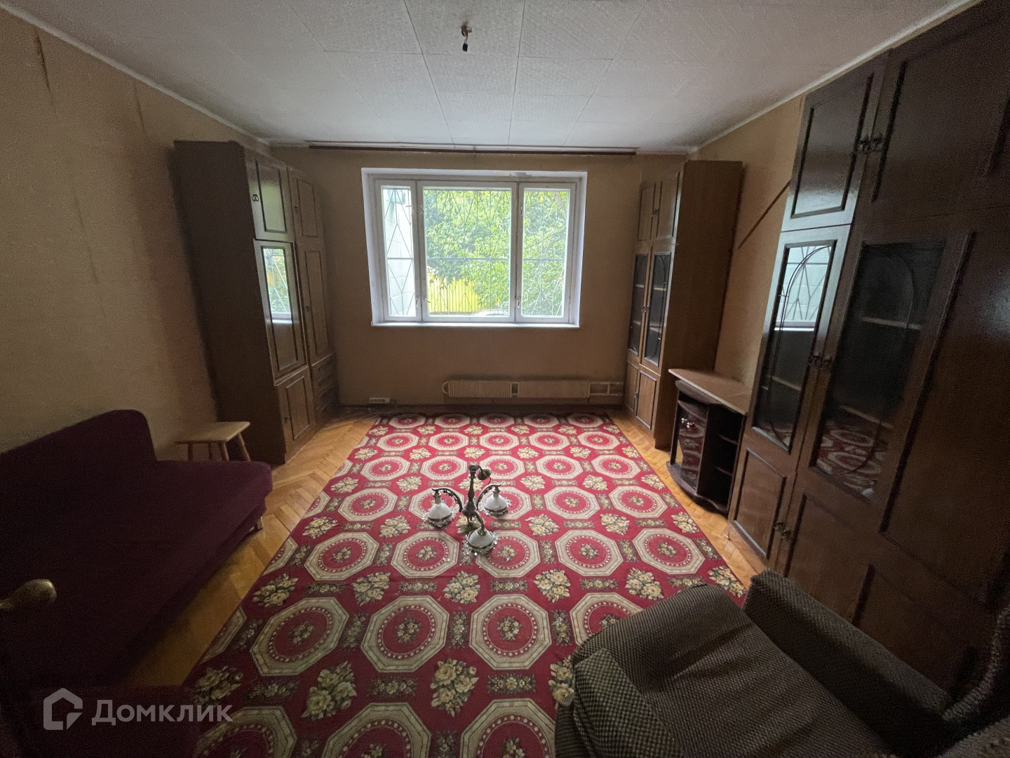 Окна выходят на тихий зеленый двор.