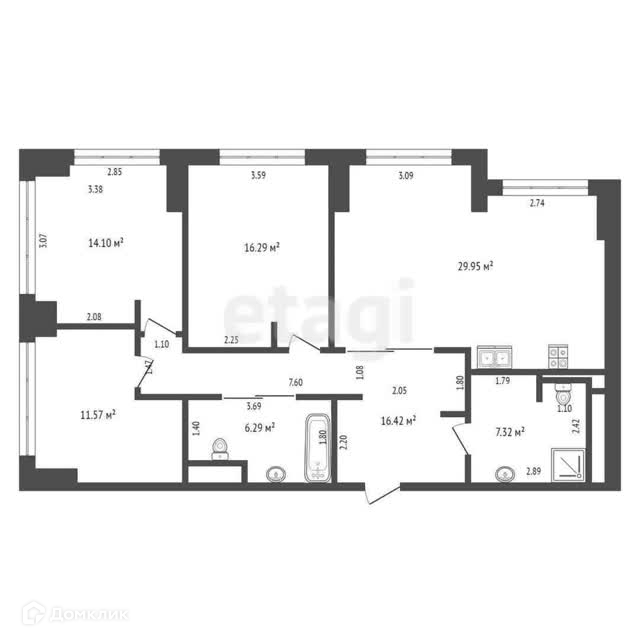 1) 3 изолированные спальни, просторная кухня-гостиная, два санузла