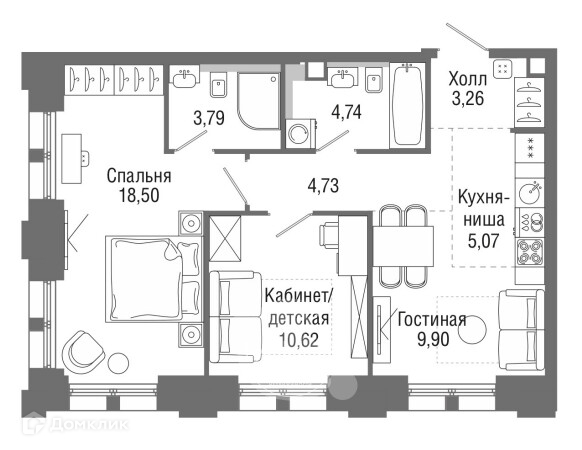 Общая площадь 58.8 м2