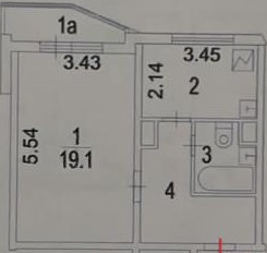 Жилая площадь 19.1 м2