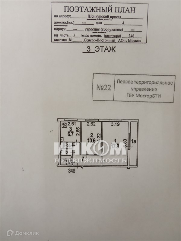 2-комнатная квартира, 44.5 м2, этаж 3 / 9, на продажу в Москве, Шенкурский проезд, 4