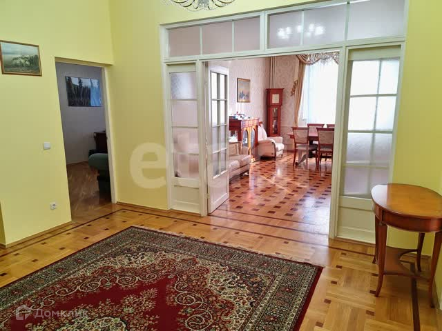 В квартире 2 входа, 5 изолированных комнат, гостинная, просторная кухня, 5 застекленных балконов, 2 санузла.