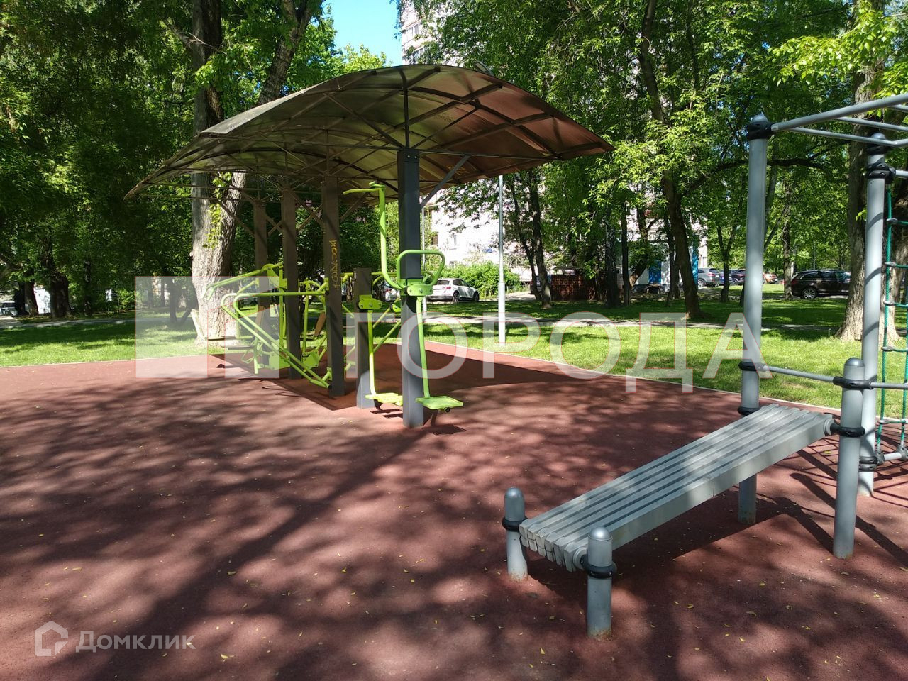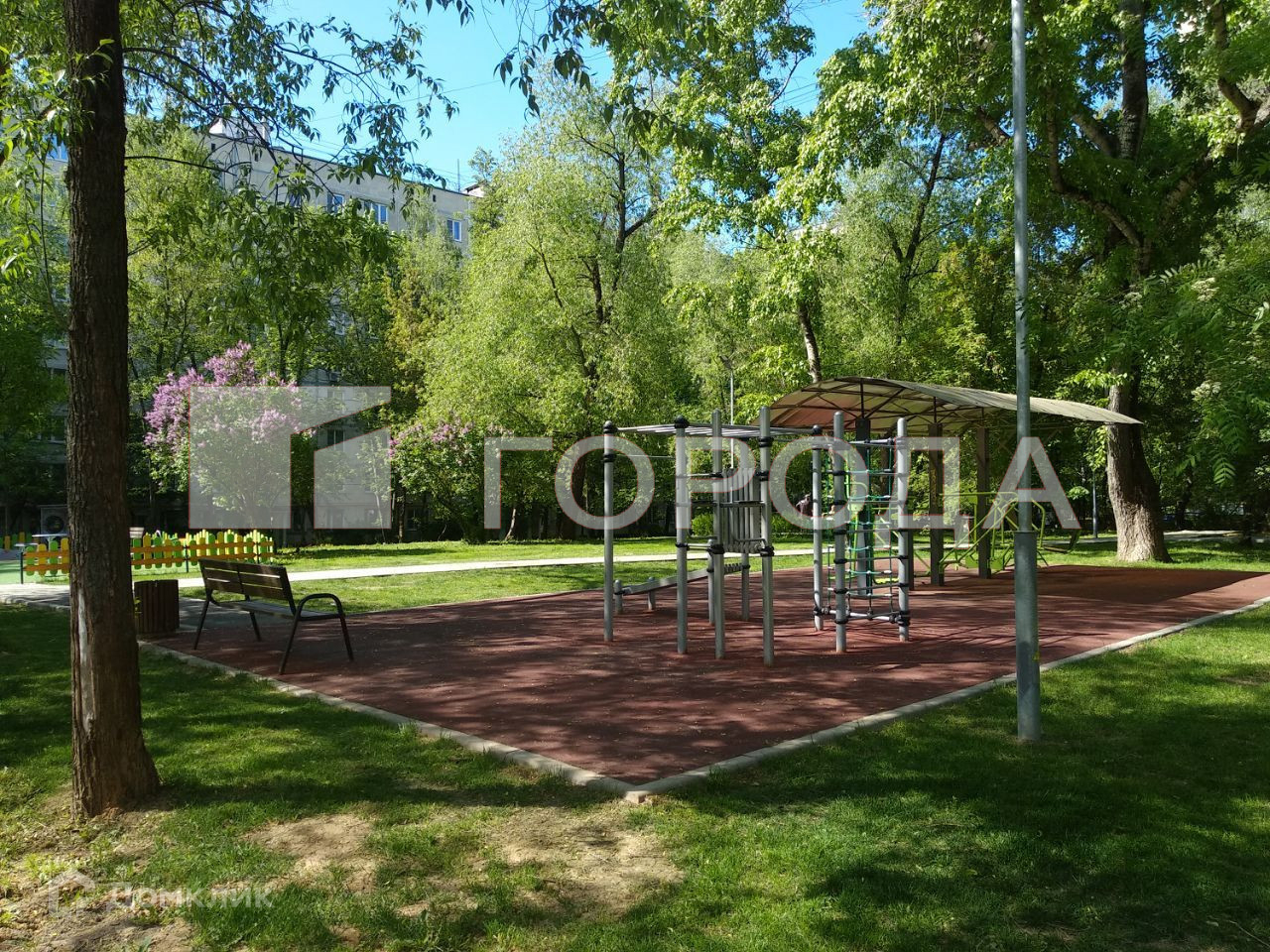 Внутренний двор оборудован спортивными тренажёрами и новой детской площадкой, что делает его прекрасным местом для активного отдыха и развлечений. Чистота и ухоженность двора придают ощущение комфорта и безопасности.