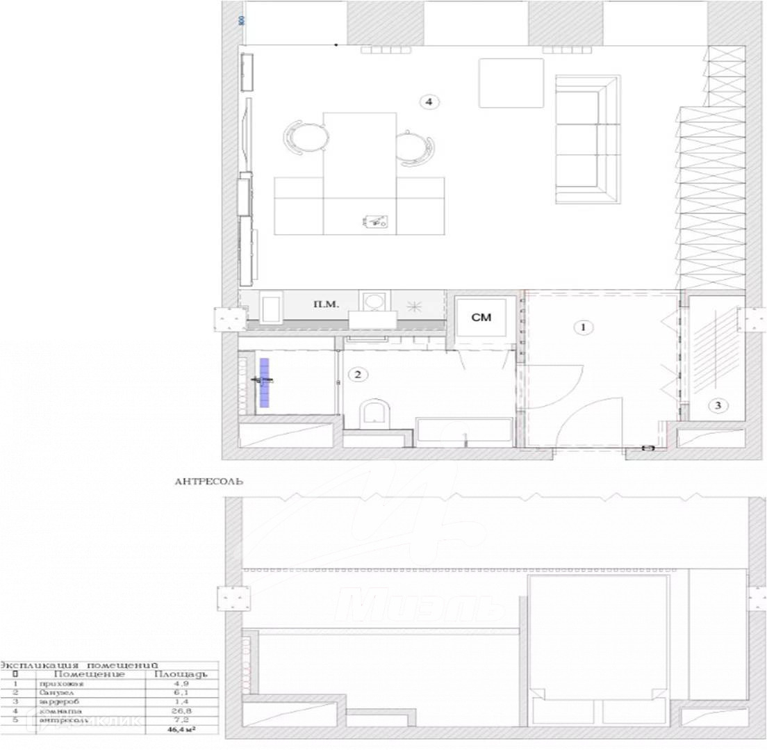 Общая площадь 46 м2