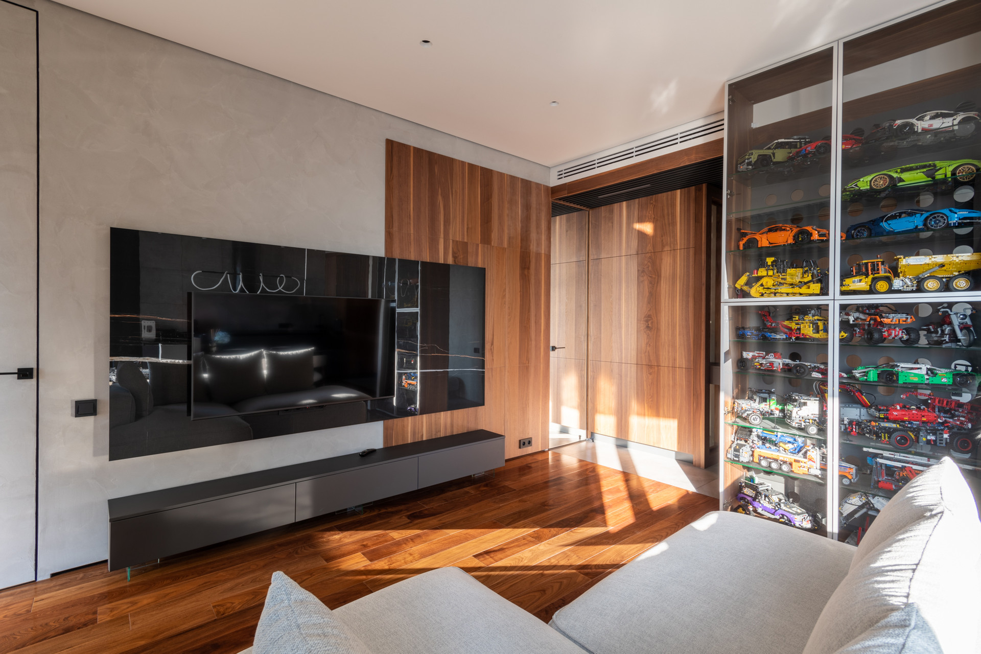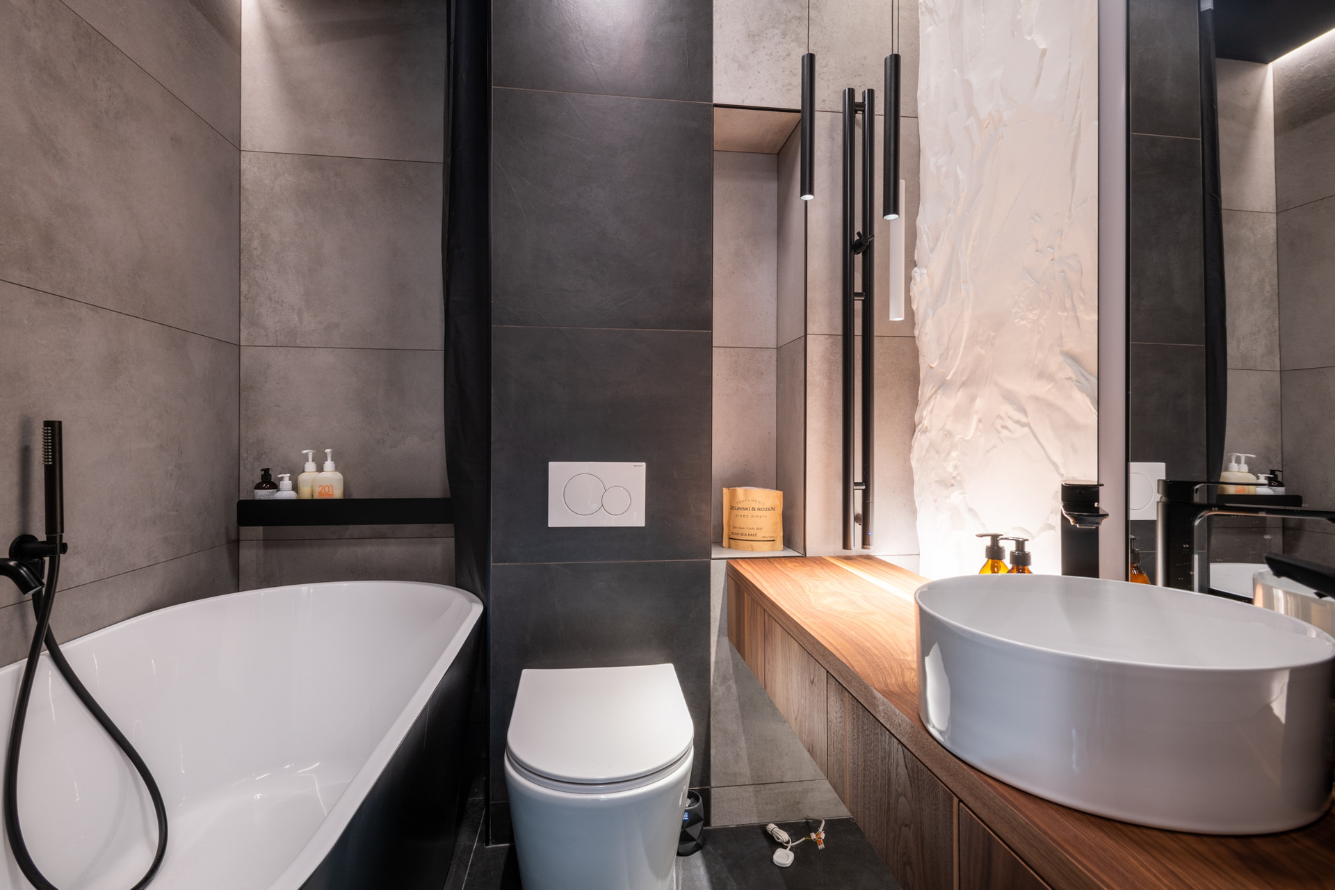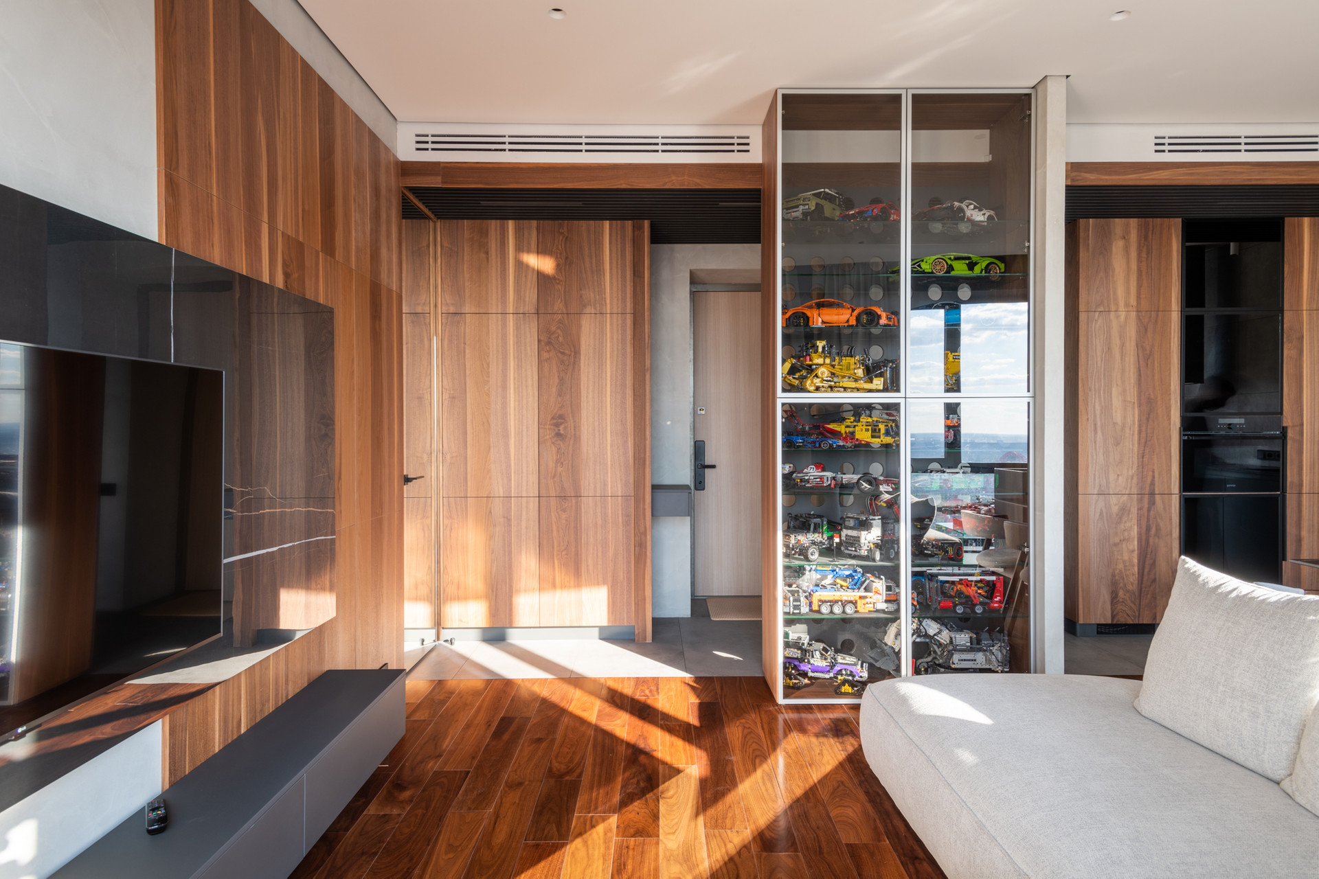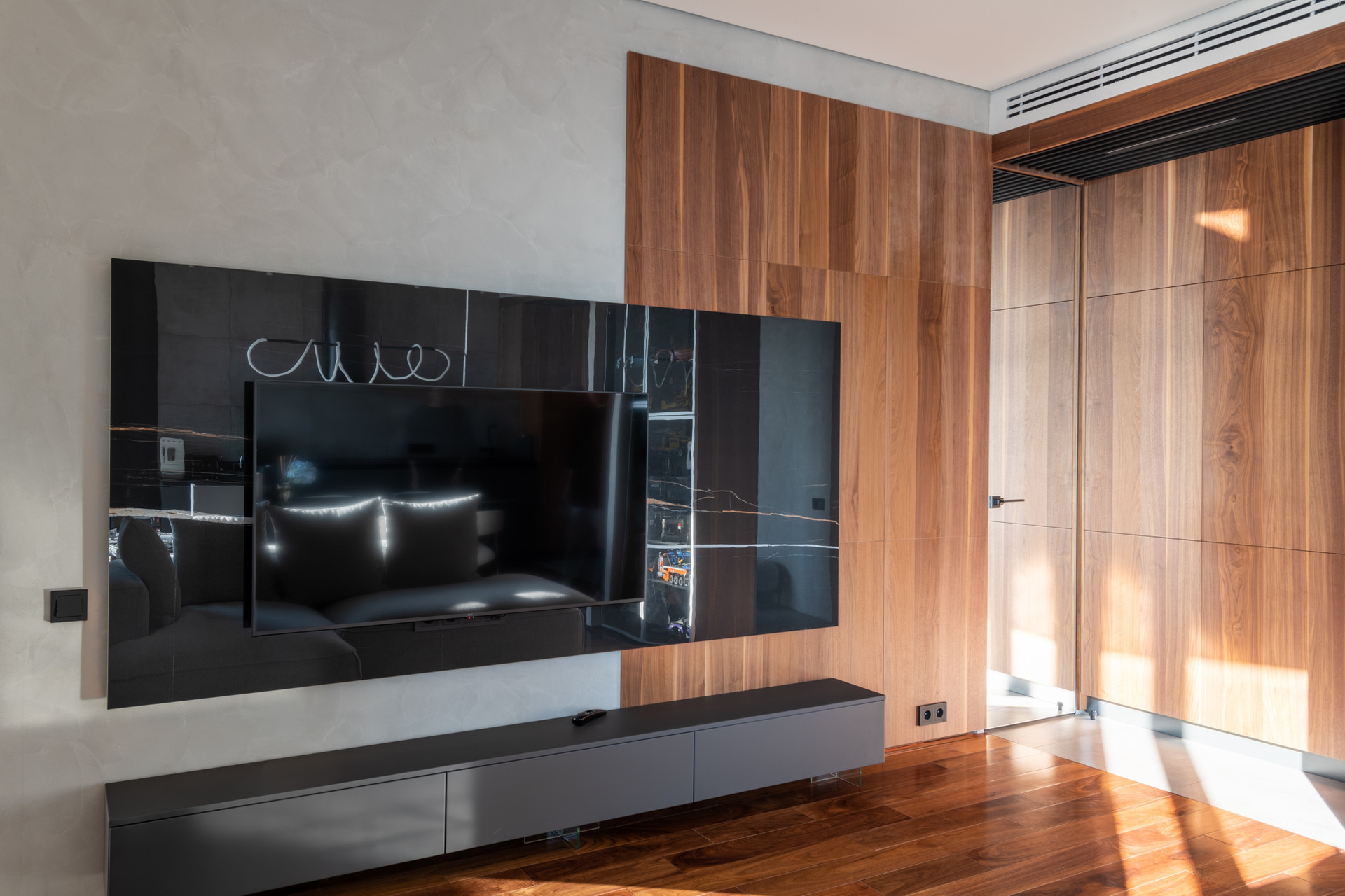 Планировка квартиры: просторная гостиная с кухонной зоной, спальня, санузел, постирочная. Высота потолков 3,1 м. Окна с панорамным остеклением открывают живописные виды на окрестности. Отделка продумана до мелочей: теплые полы, внутрипольные конвекторы с функцией принудительной конвекции, бесшумные кондиционеры, теневые плинтуса с контурной подсветкой, установлены измельчители и датчики протечки воды в мокрых зонах. Продуманное комфортное освещение – премиальный ЦентрСвет. Подключена система "Умный Дом". Вся мебель изготовлена под заказ, техника ведущих производителей – практически все остается в качестве приятного бонуса покупателю.