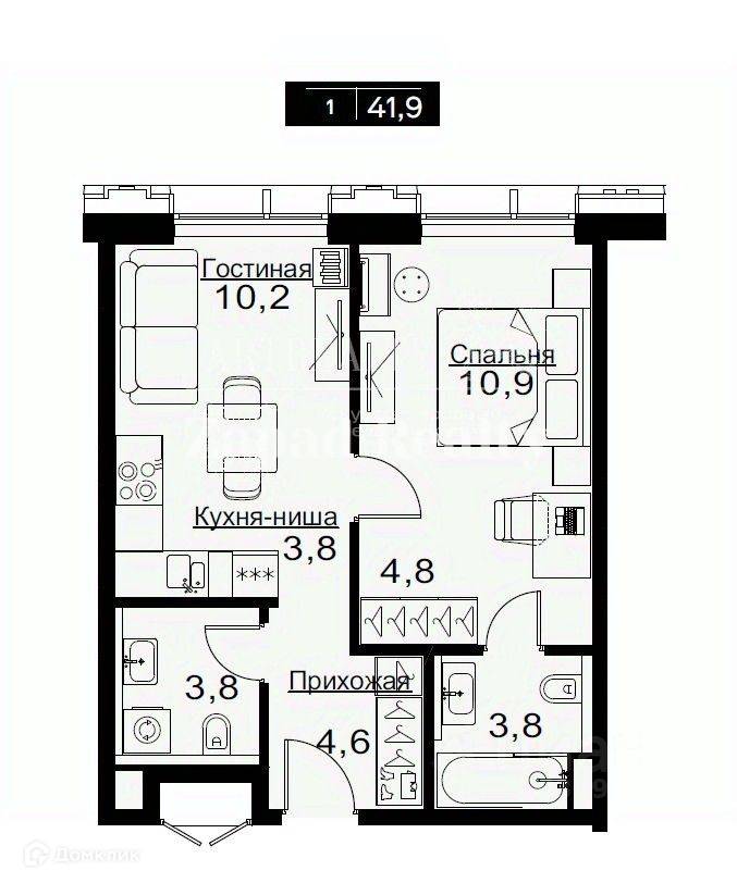 Общая площадь 41.9 м2