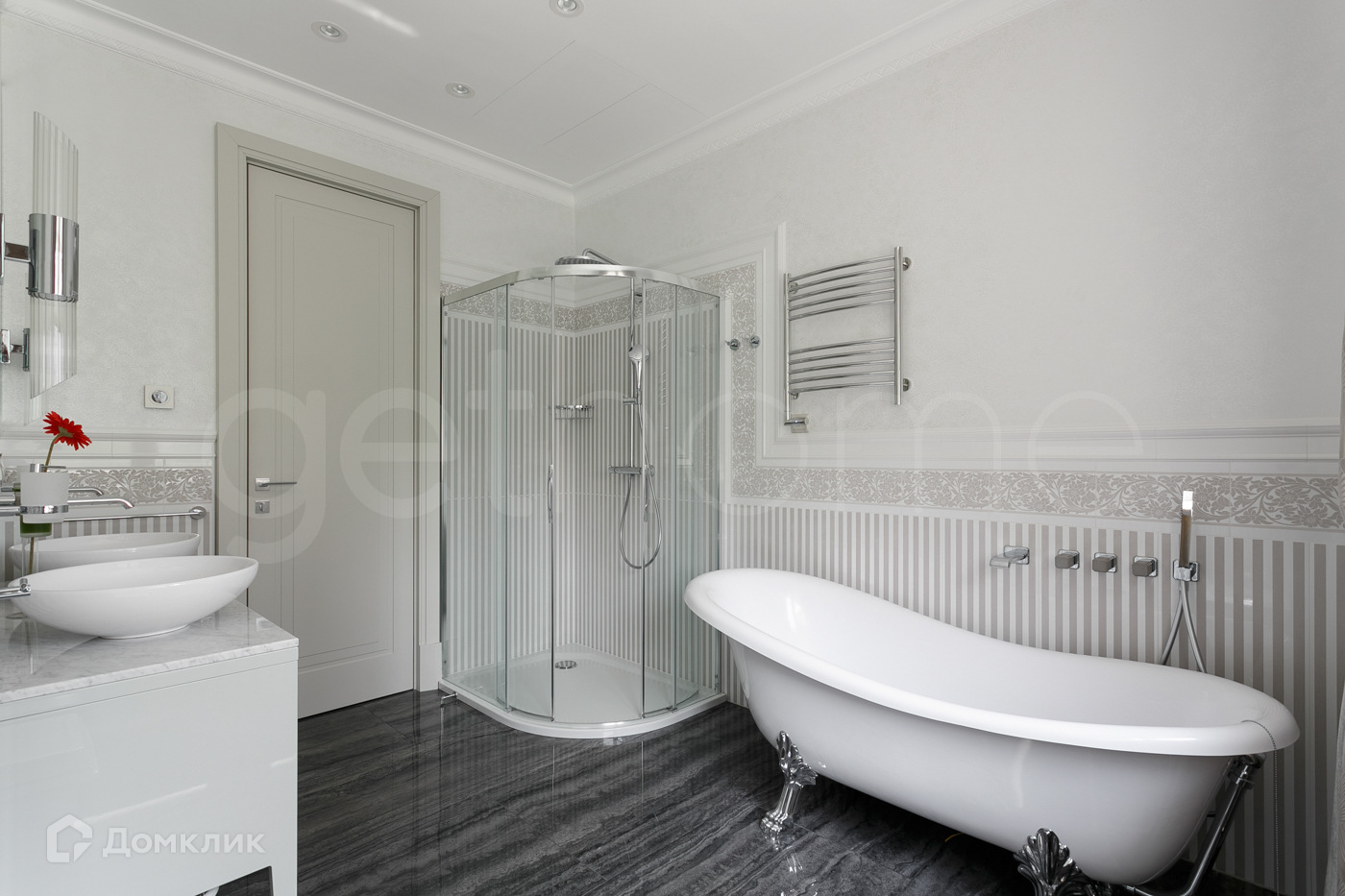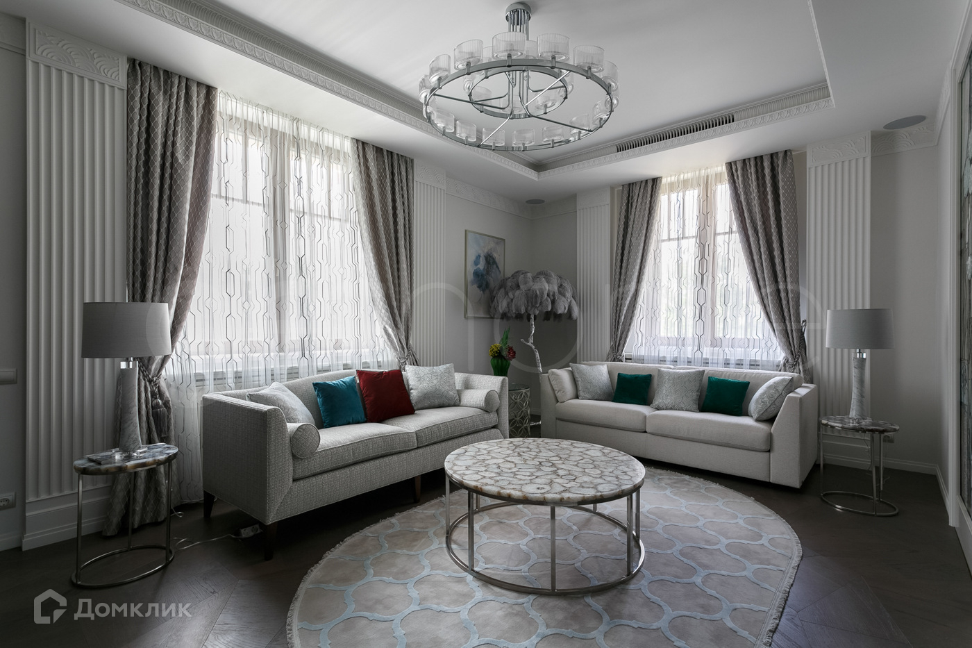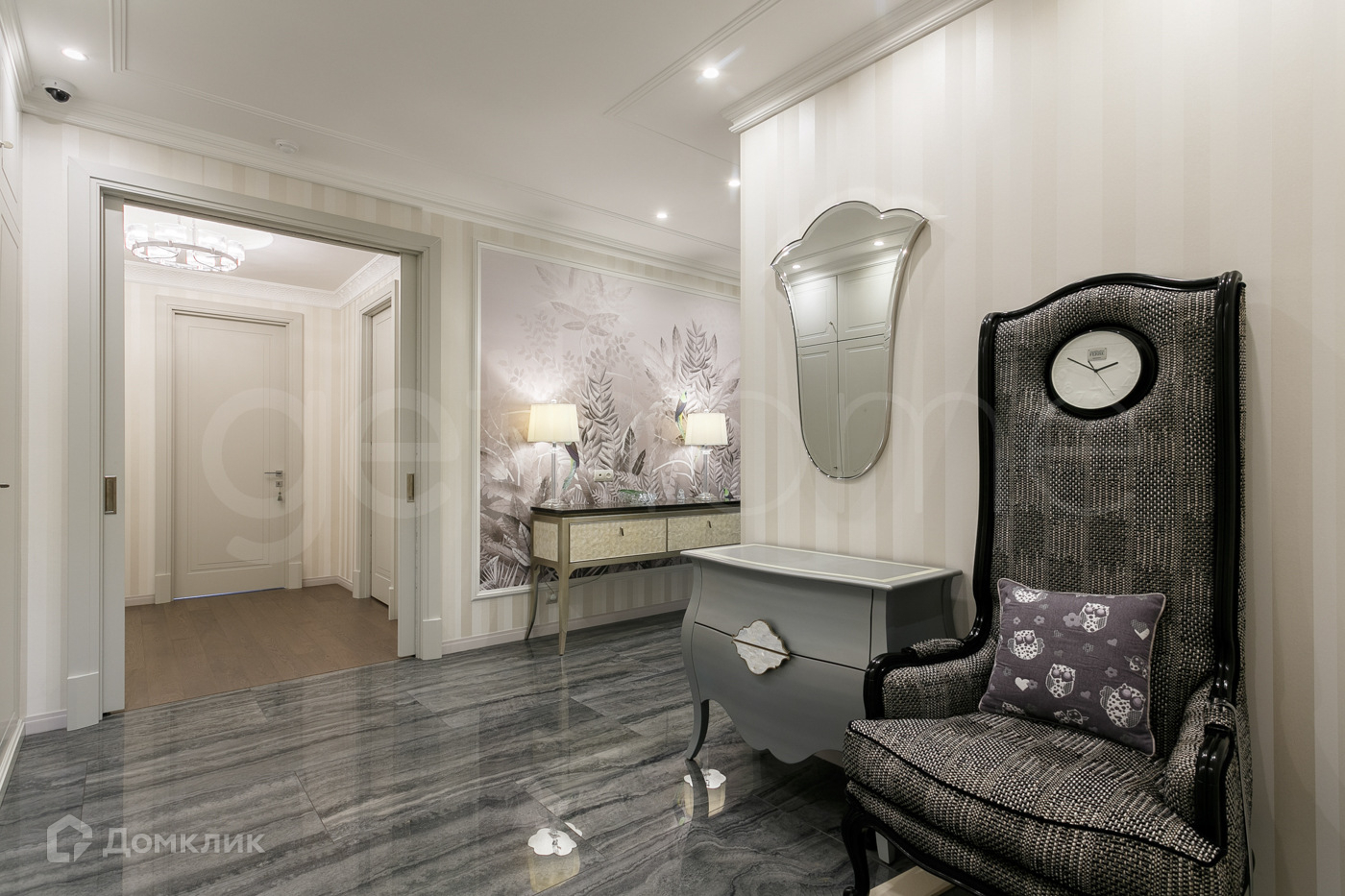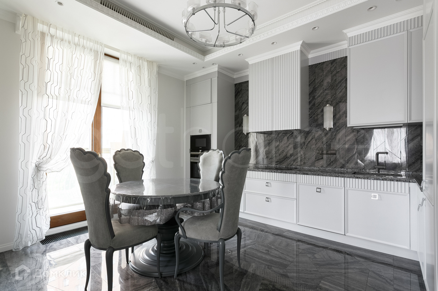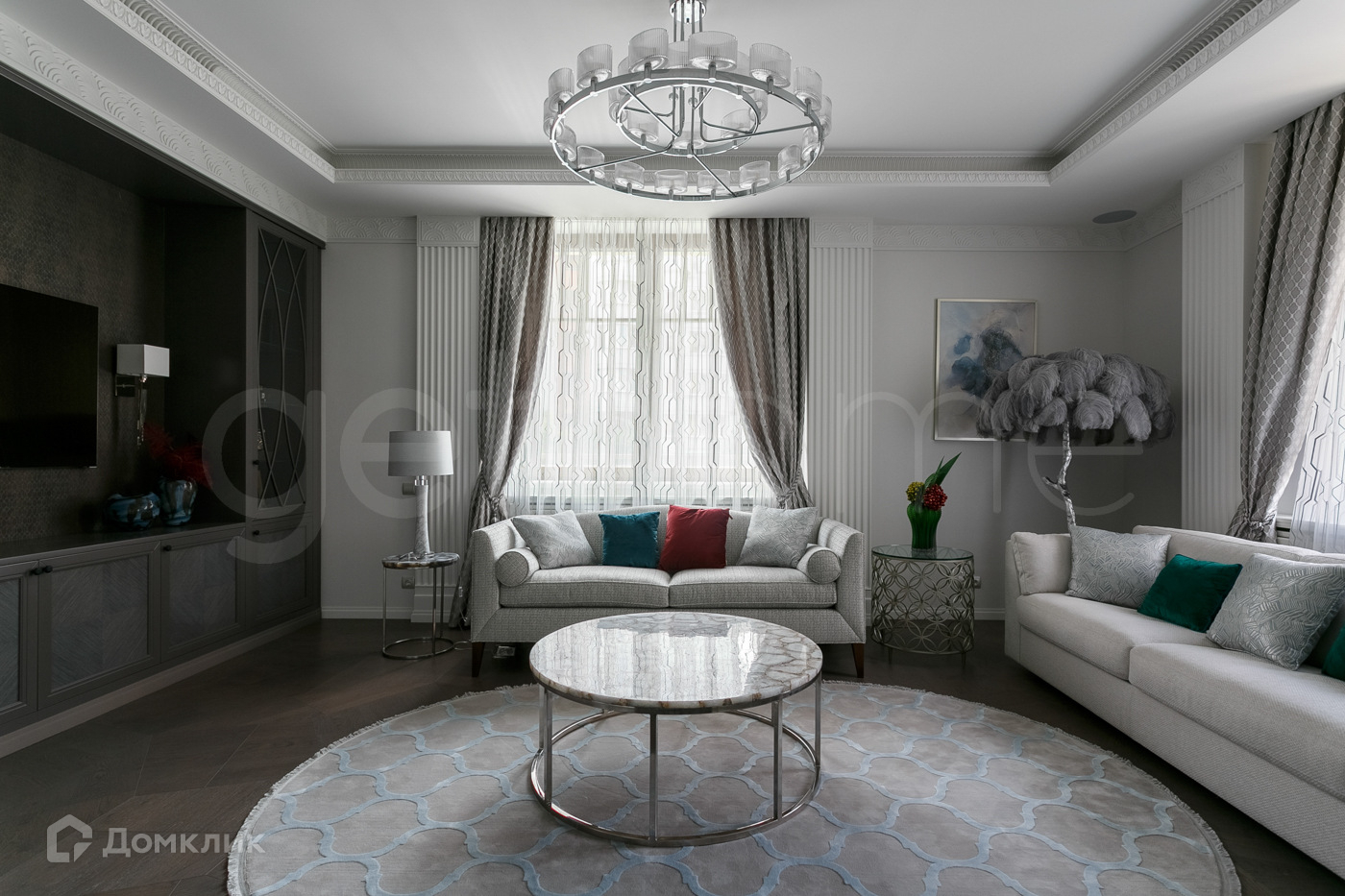 В отделке использованы дорогостоящие натуральные материалы. Квартира укомплектована мебелью от ведущих брендов Италии и США ( BERNAZZOLI, Giorgiocasa, Mia Italia Bathroom, Caracole) сантехника Gessi, бытовая техника Siemens.