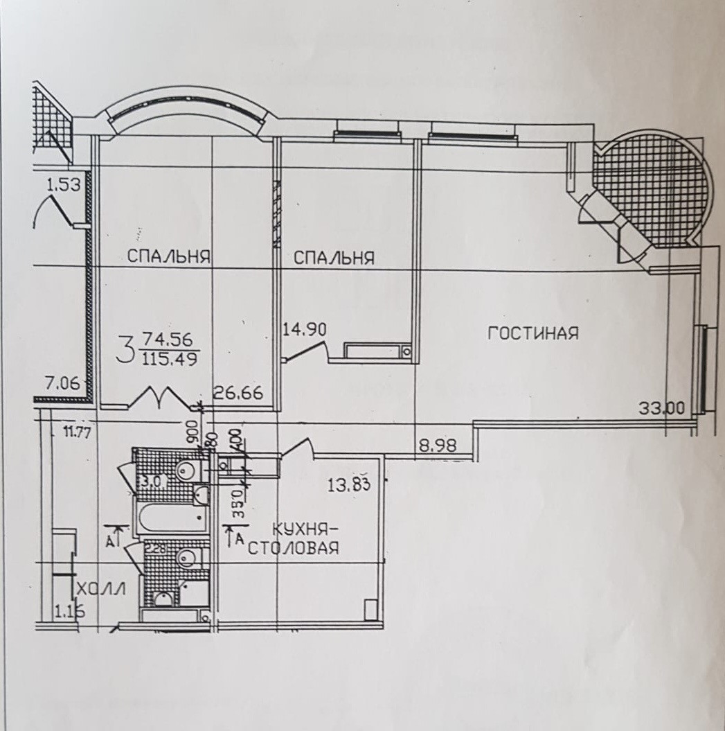 Жилая площадь 74.3 м2