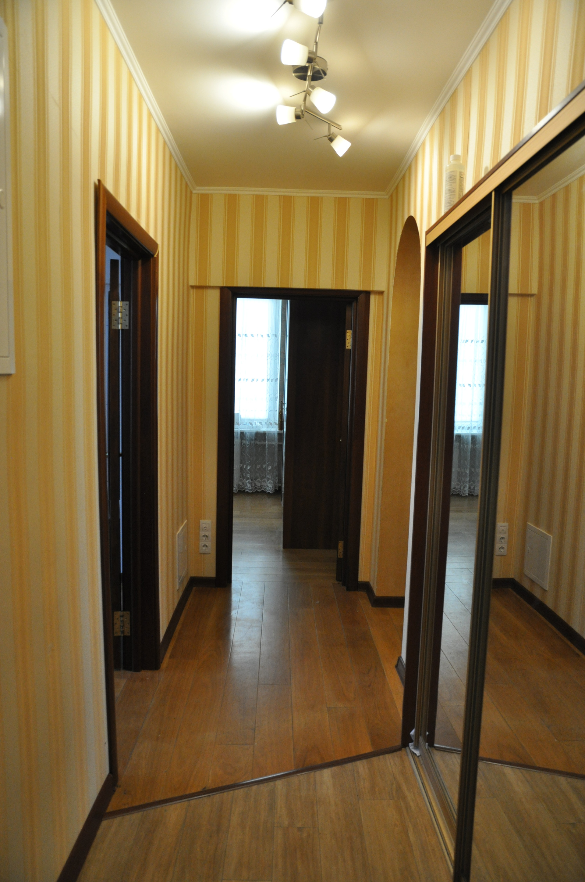 На этаже всего 3 квартиры (в доме всего 45 квартир), хорошие соседи, недавно закончившие ремонт своих квартир. Хорошая звукоизоляция от соседей. Достаточное количество парковочных мест во дворе.