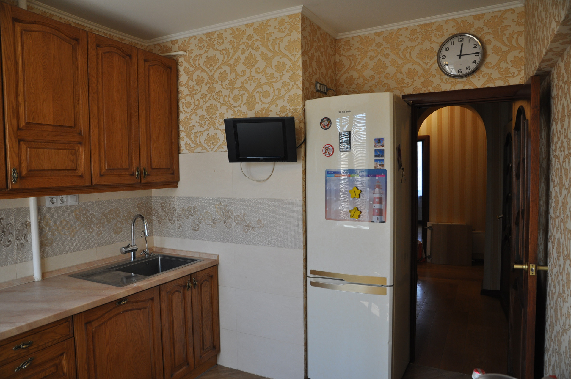 Кухня  полностью массив дуба. Большая встроенная (60 см) посудомоечная машина Bosh.