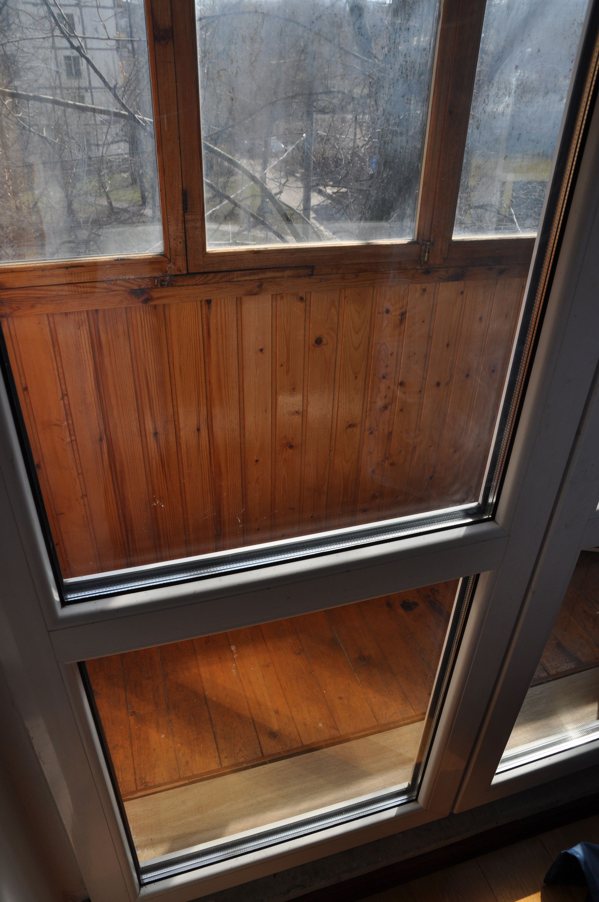 Балкон застеклен и обшит вагонкой.