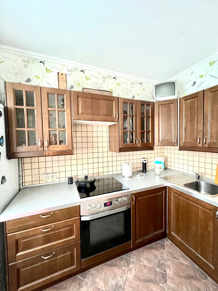 В квартире останется кухонный гарнитур со встроенной бытовой техникой, спальня, диван, прихожая – все что вы видите на фотографиях и необходимо для переезда.