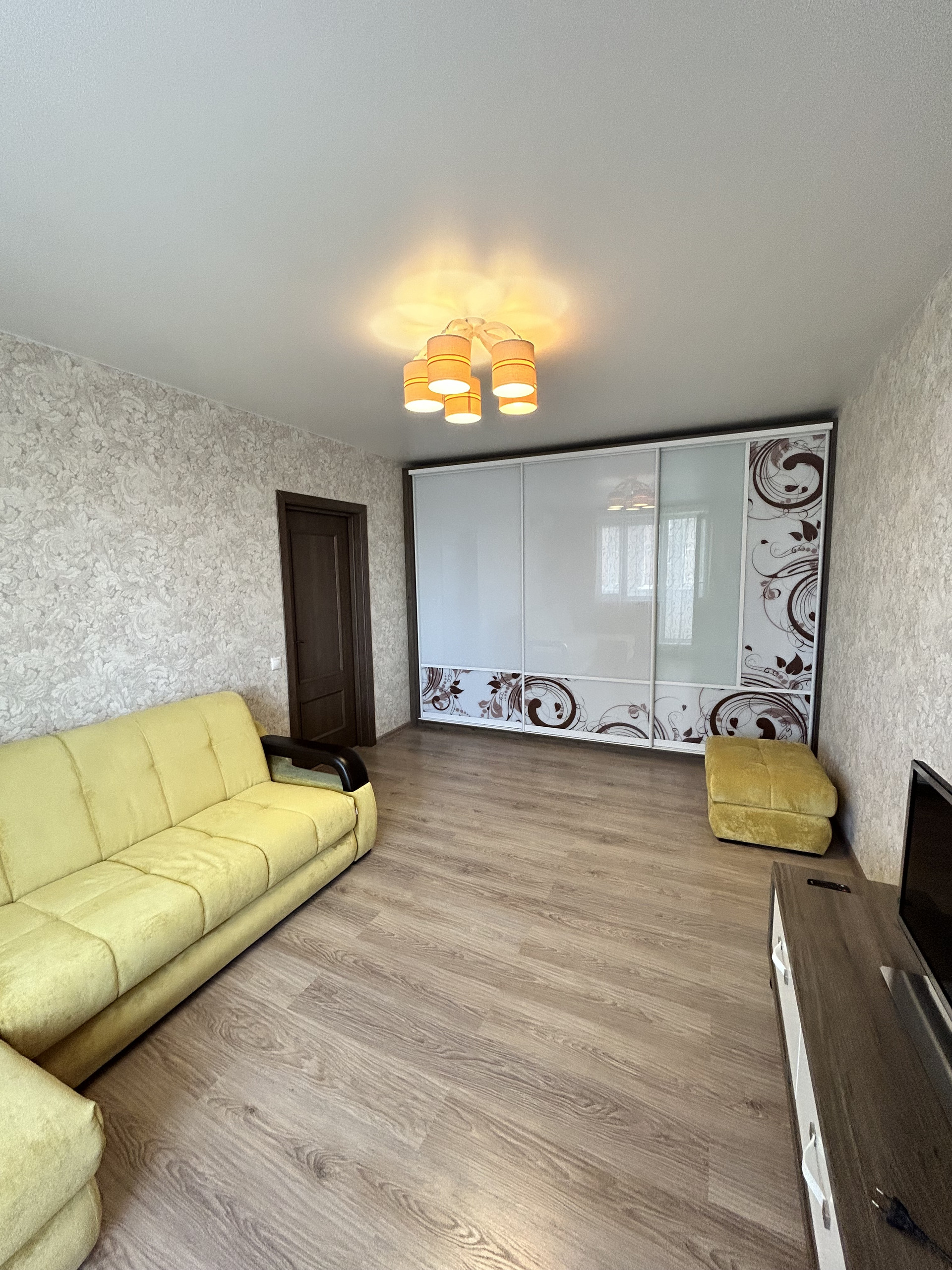 В жилой комнате установлен кондиционер и большой встроенный шкаф-купе.