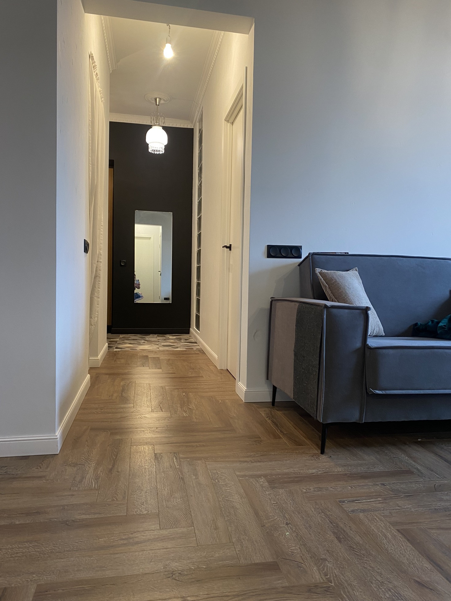 Новый дизайнерский ремонт 2022 года, последний этаж, полная шумоизоляция. Большая кухня-гостиная 22 кв.м, изолированная спальня, кабинет/детская, просторный с/у с ванной и душевой кабиной, постирочная, гардеробная.