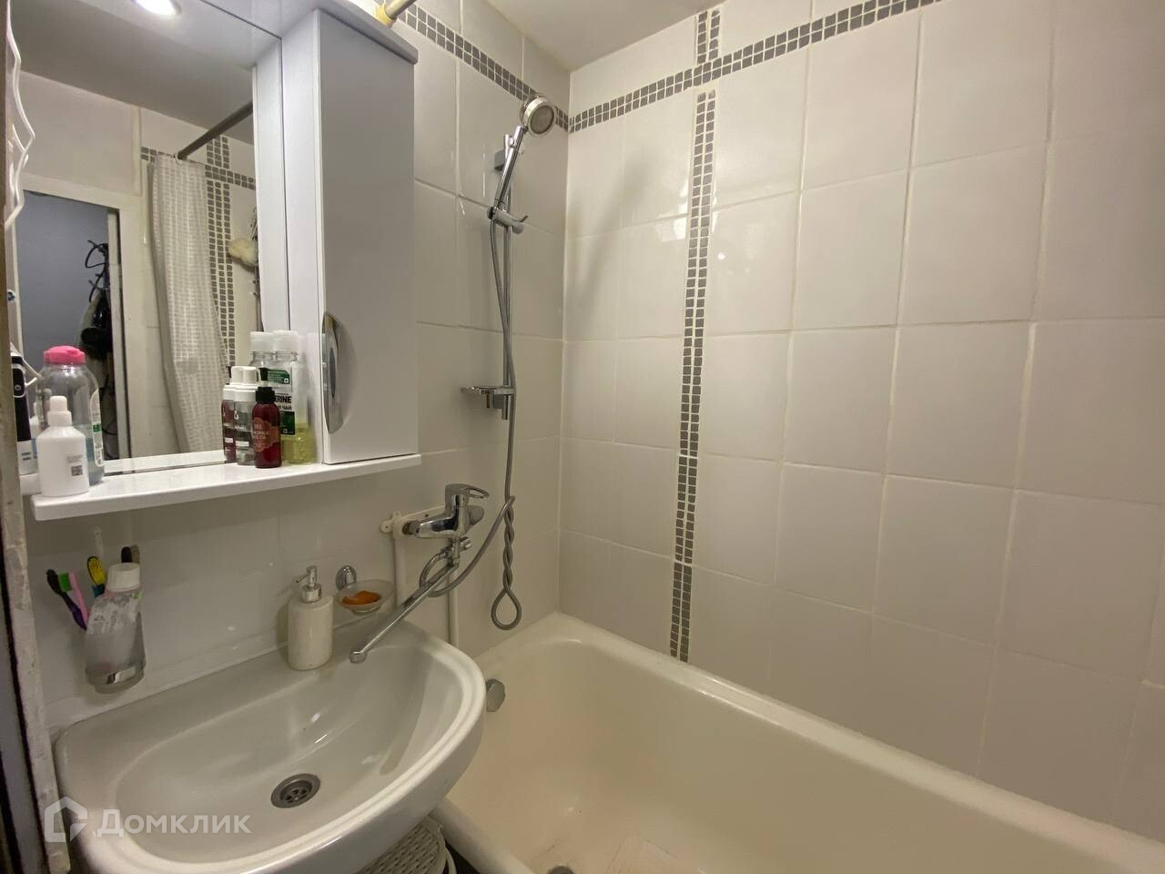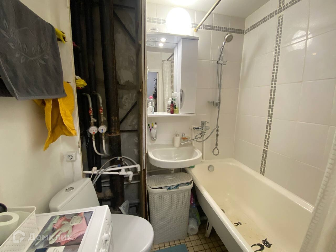 - в ванной плитка; современная стиральная машина - Hotpoint,