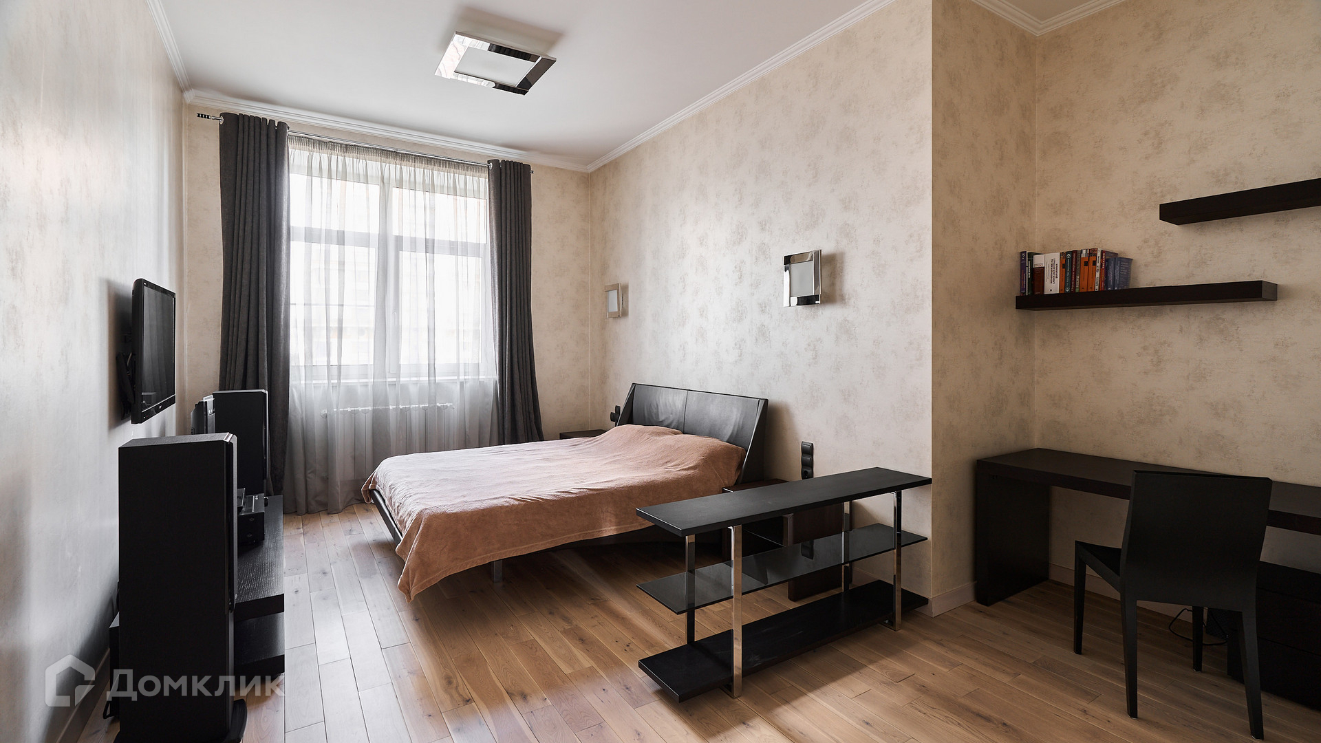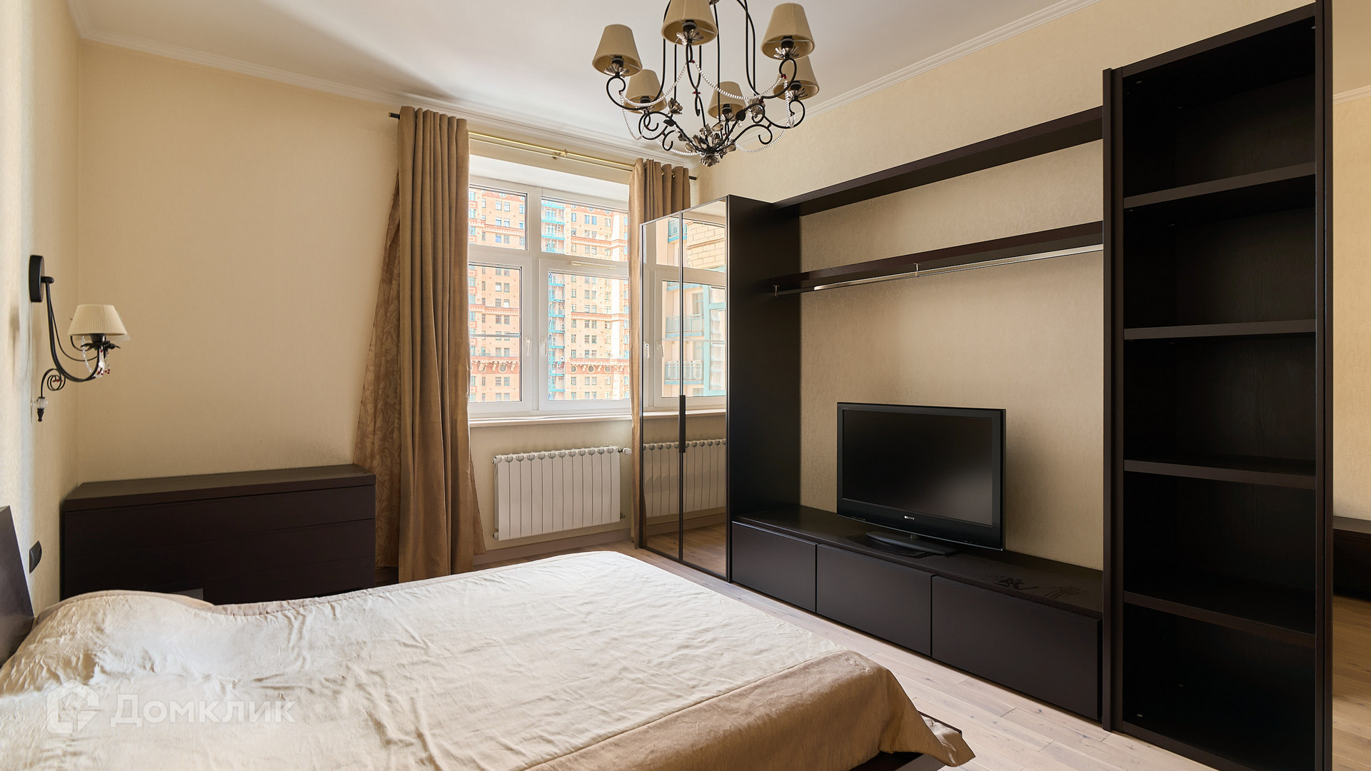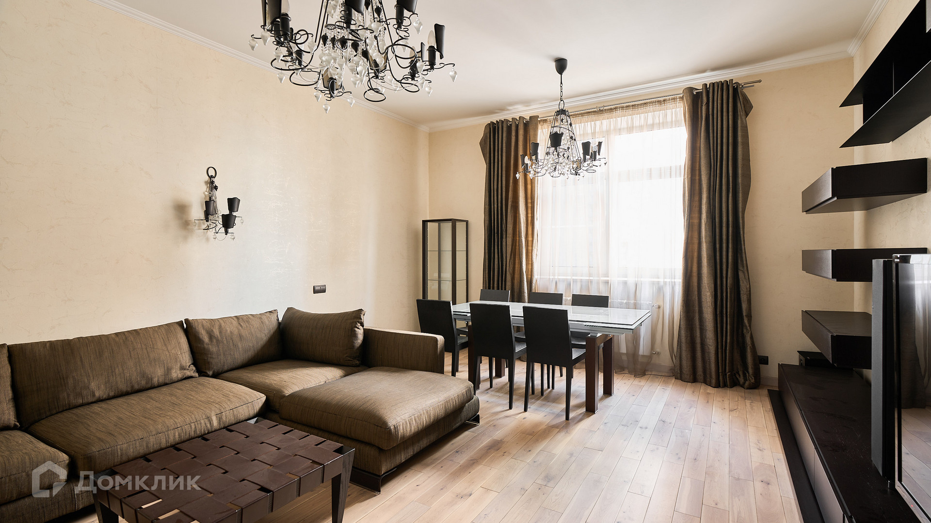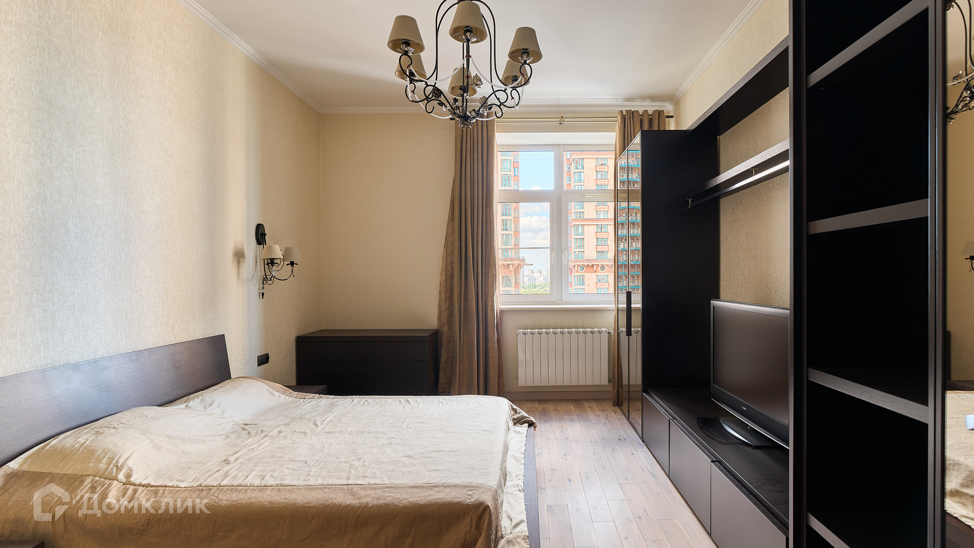 ID 192 149. Квартира с 2-мя спальнями общей площадью 130 м² в квартале бизнес-класса «Алые Паруса» на берегу Москвы-реки. Выполнен ремонт в классическом стиле в благородных бежевых и коричневых оттенках, в отделке санузлов использована мозаичная плитка. В квартире установлена система приточно-вытяжной вентиляции и кондиционирования.