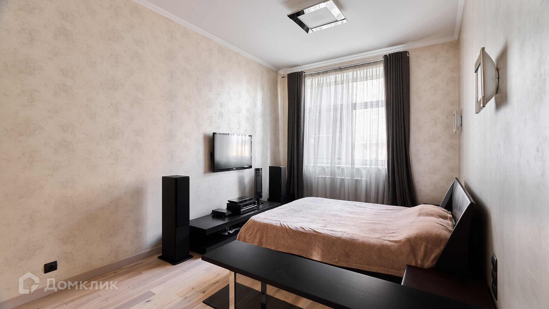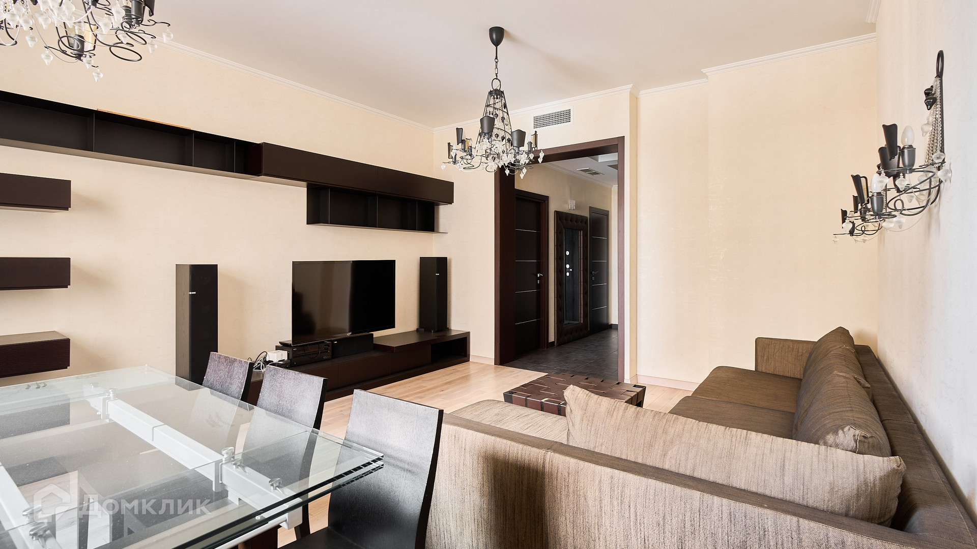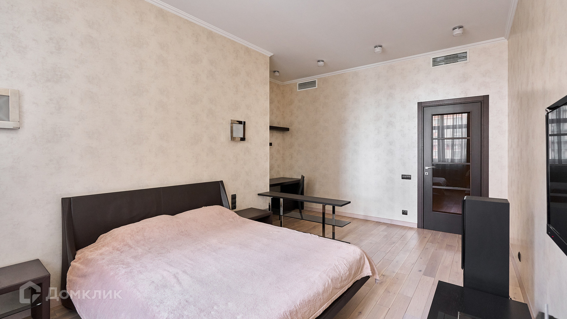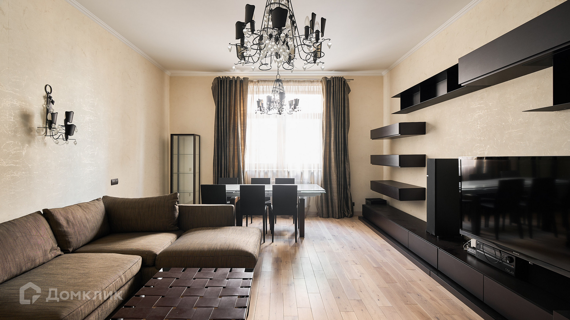 ID 192 149. Квартира с 2-мя спальнями общей площадью 130 м² в квартале бизнес-класса «Алые Паруса» на берегу Москвы-реки. Выполнен ремонт в классическом стиле в благородных бежевых и коричневых оттенках, в отделке санузлов использована мозаичная плитка. В квартире установлена система приточно-вытяжной вентиляции и кондиционирования.