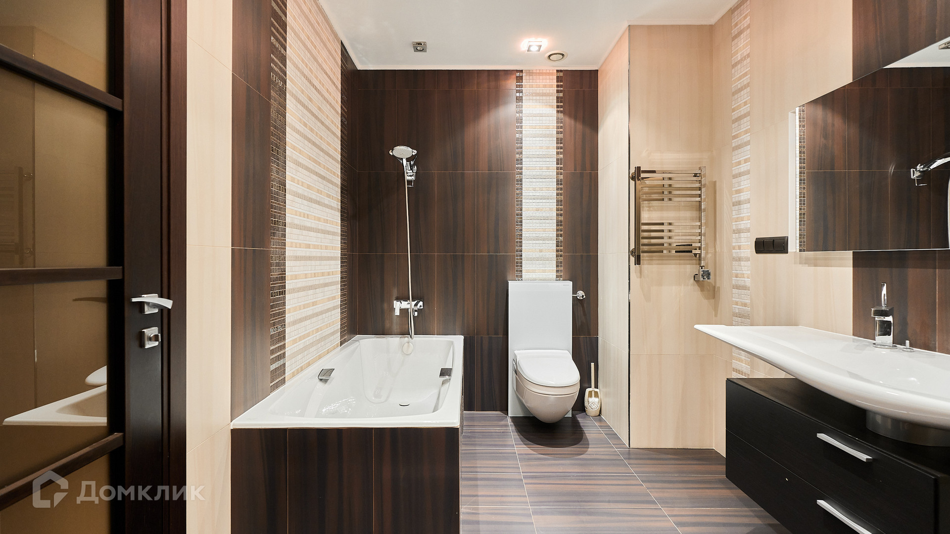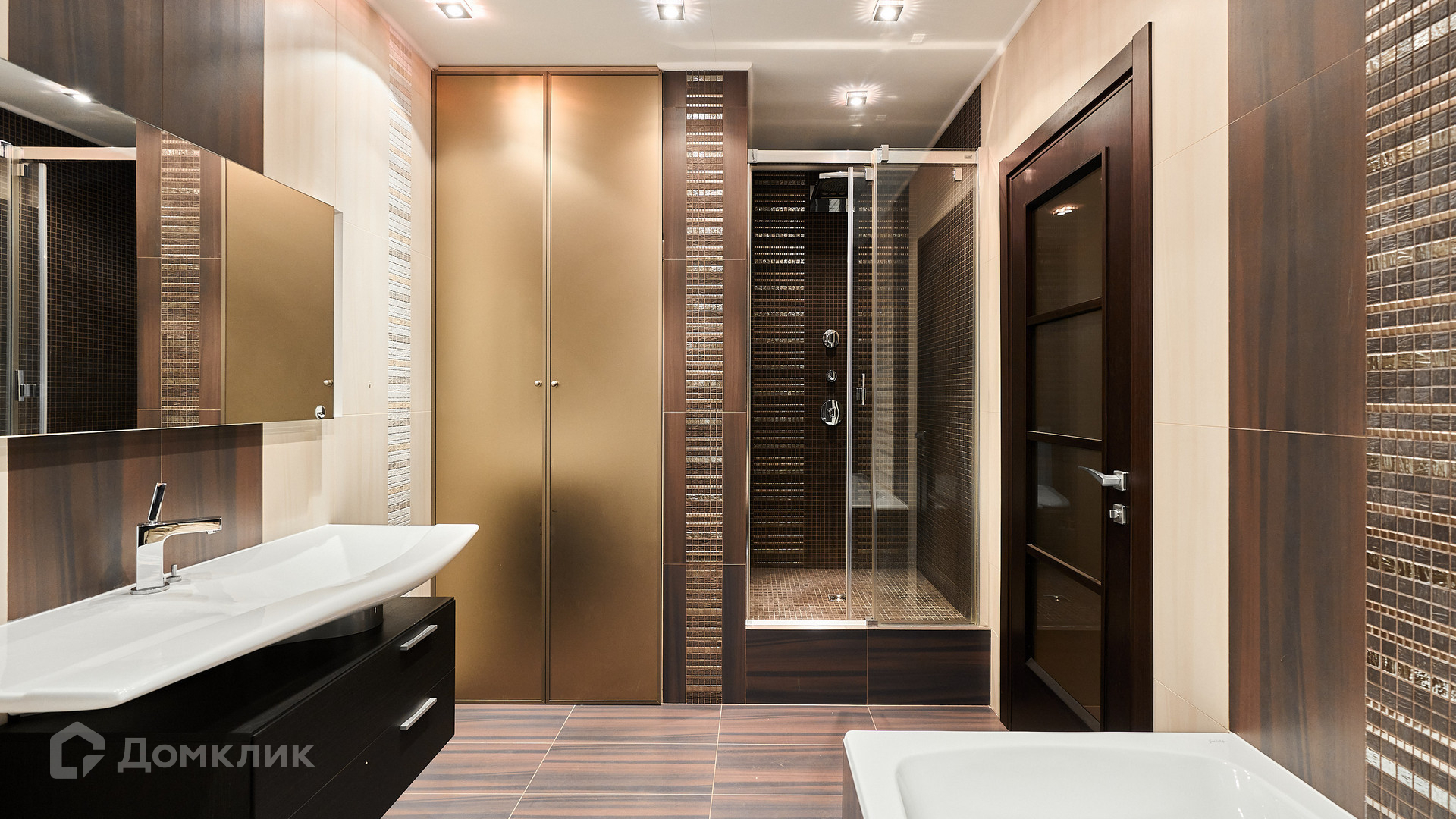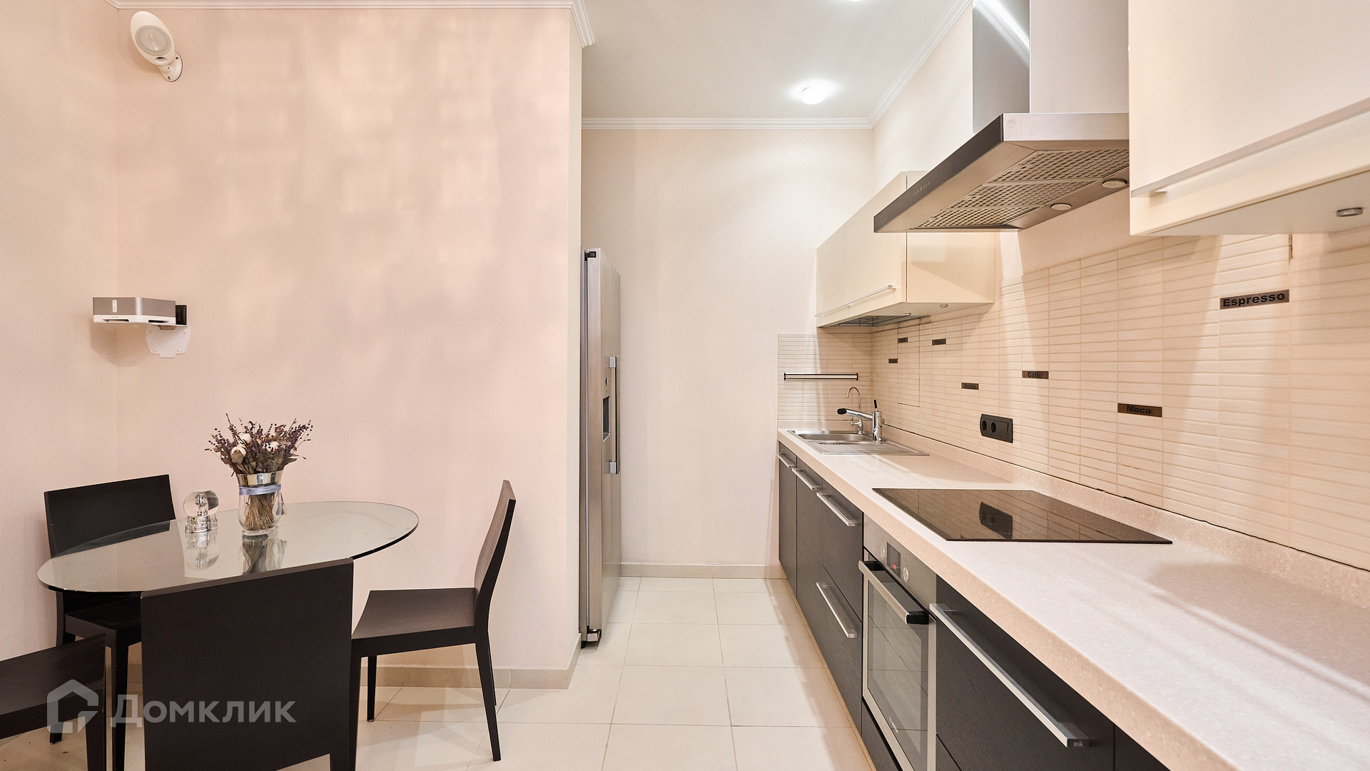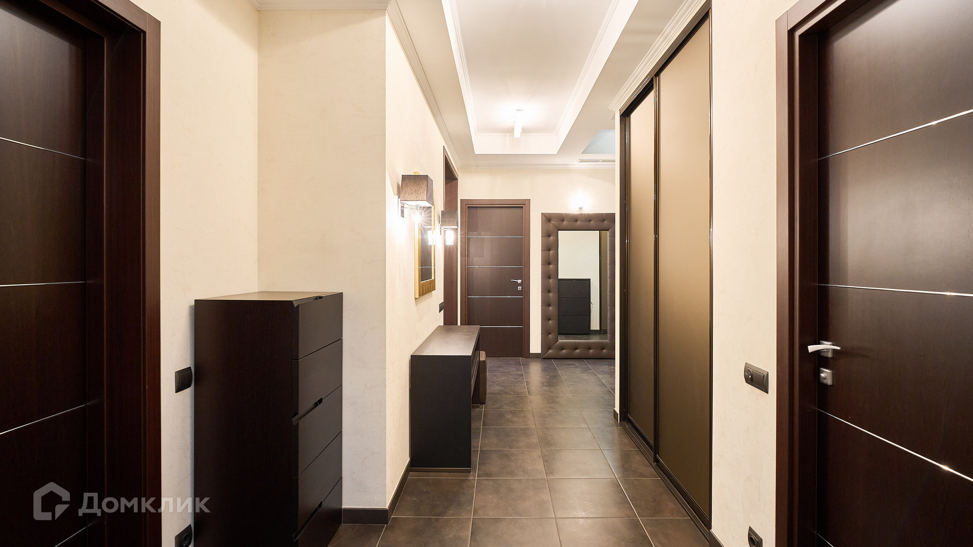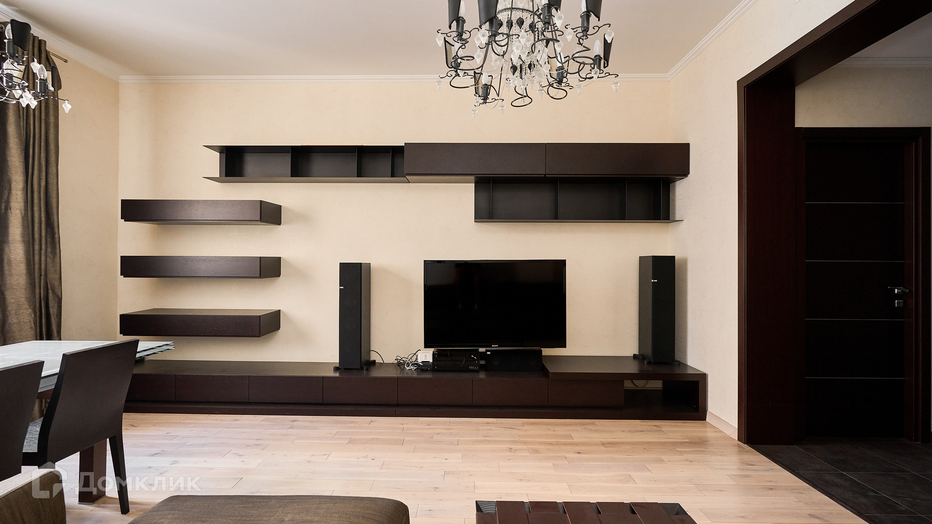 ID 192 149. Квартира с 2-мя спальнями общей площадью 130 м² в квартале бизнес-класса «Алые Паруса» на берегу Москвы-реки. Выполнен ремонт в классическом стиле в благородных бежевых и коричневых оттенках, в отделке санузлов использована мозаичная плитка. В квартире установлена система приточно-вытяжной вентиляции и кондиционирования.