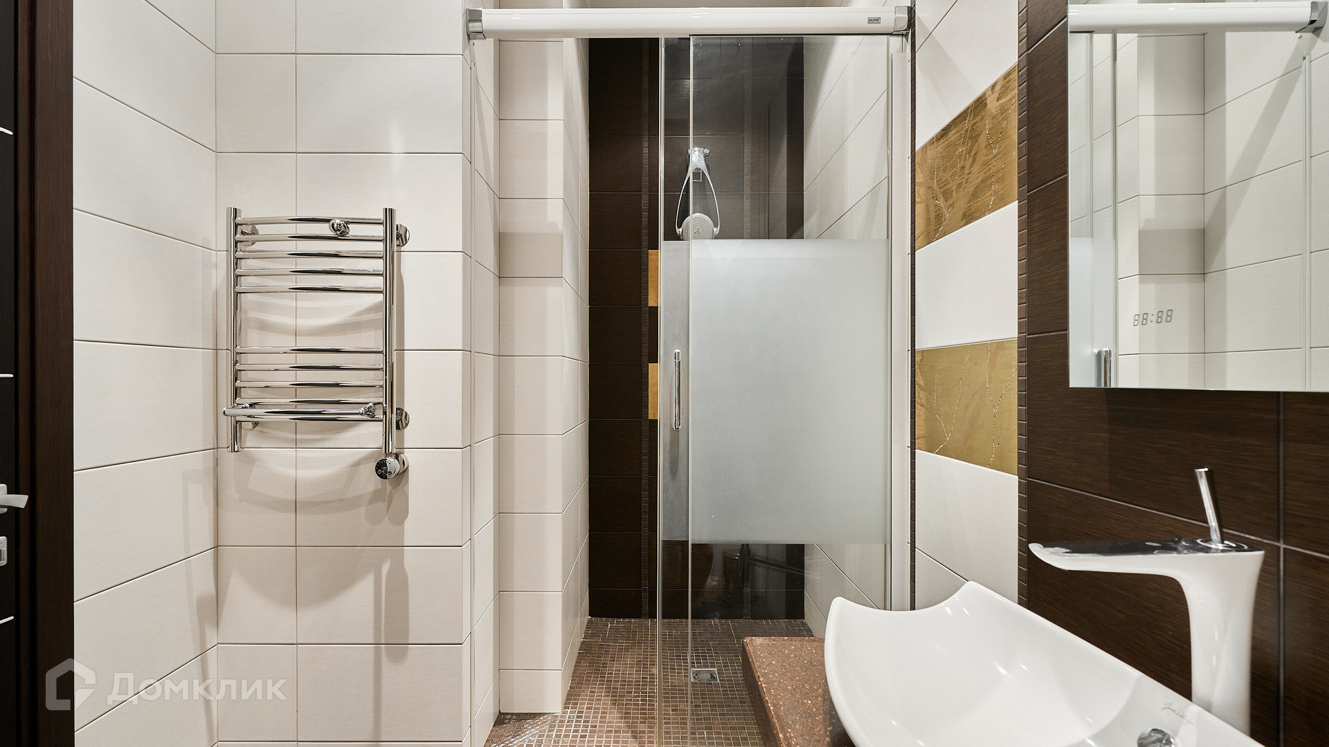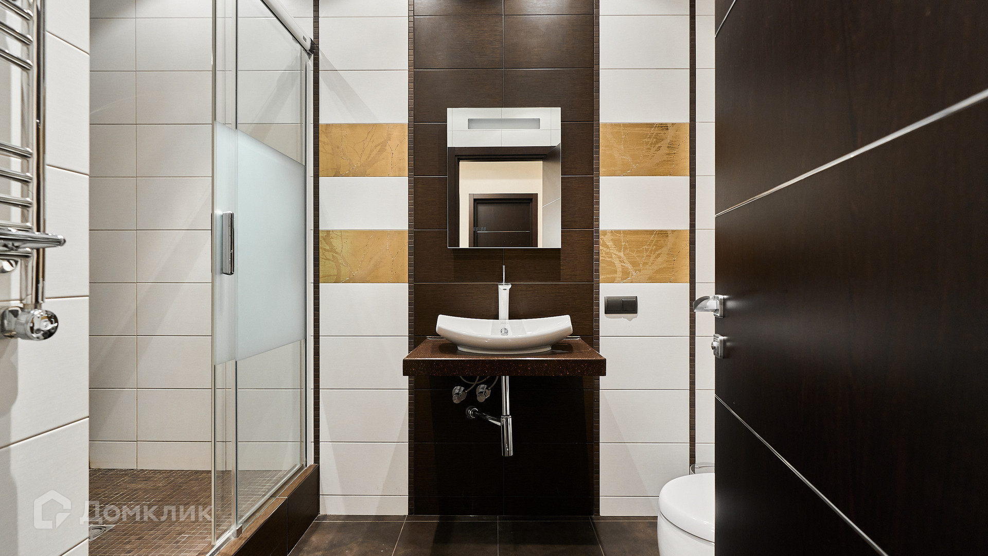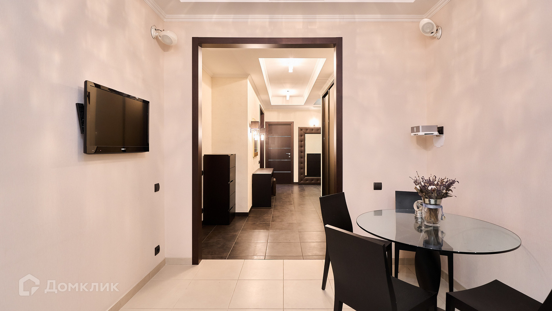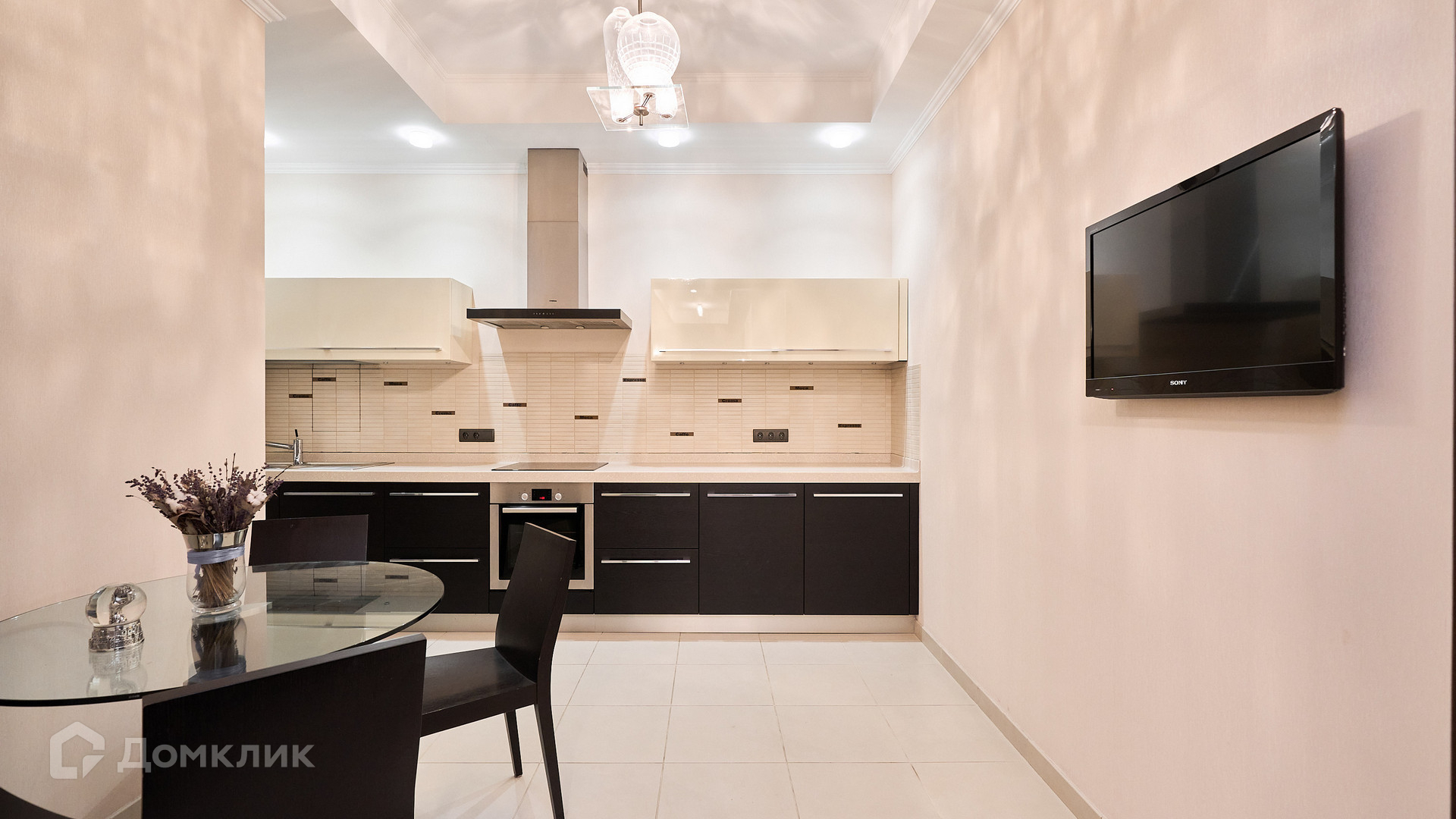 ID 192 149. Квартира с 2-мя спальнями общей площадью 130 м² в квартале бизнес-класса «Алые Паруса» на берегу Москвы-реки. Выполнен ремонт в классическом стиле в благородных бежевых и коричневых оттенках, в отделке санузлов использована мозаичная плитка. В квартире установлена система приточно-вытяжной вентиляции и кондиционирования.