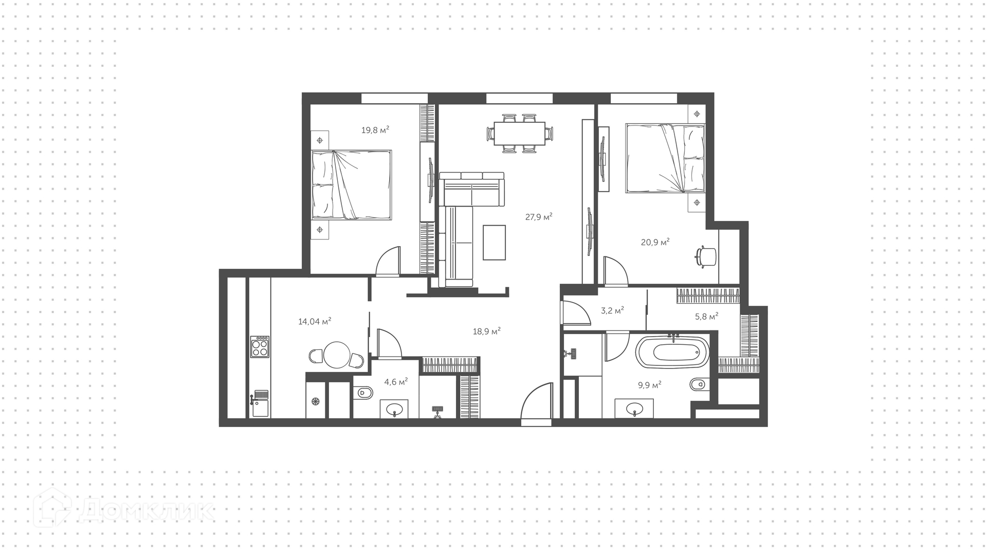 3-комнатная квартира, 130 м2, этаж 14 / 32, на продажу в Москве, Авиационная улица, 77