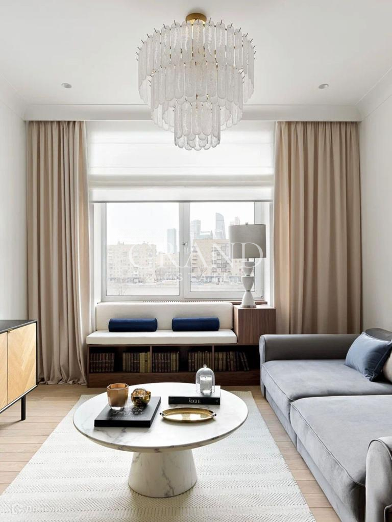 В квартире выполнен высококачественный ремонт из натуральных материалов. Квартира публиковалась в журнале ELLE DECORATION. Со всех окон открываются потрясающие виды в сторону Москва-сити.