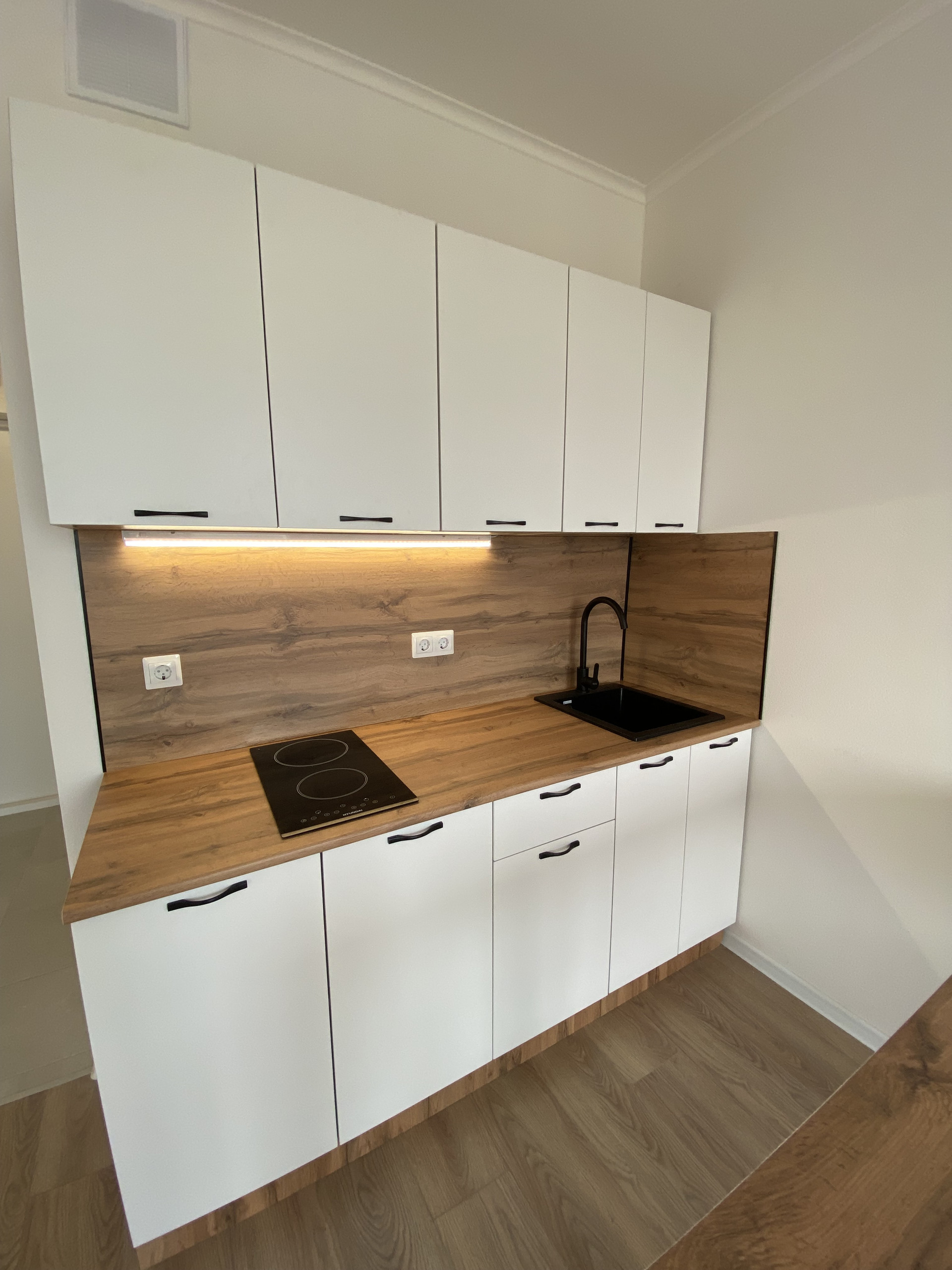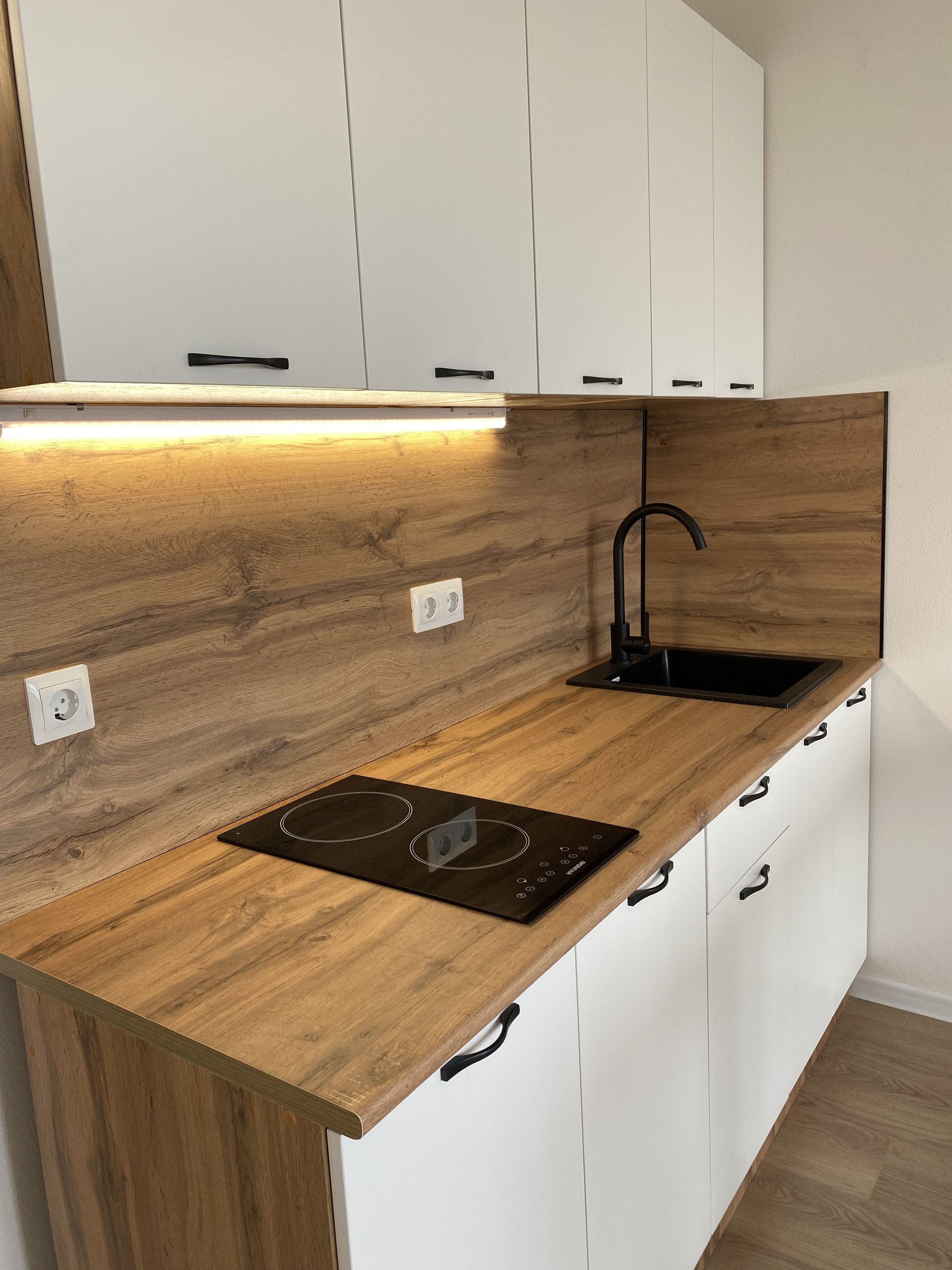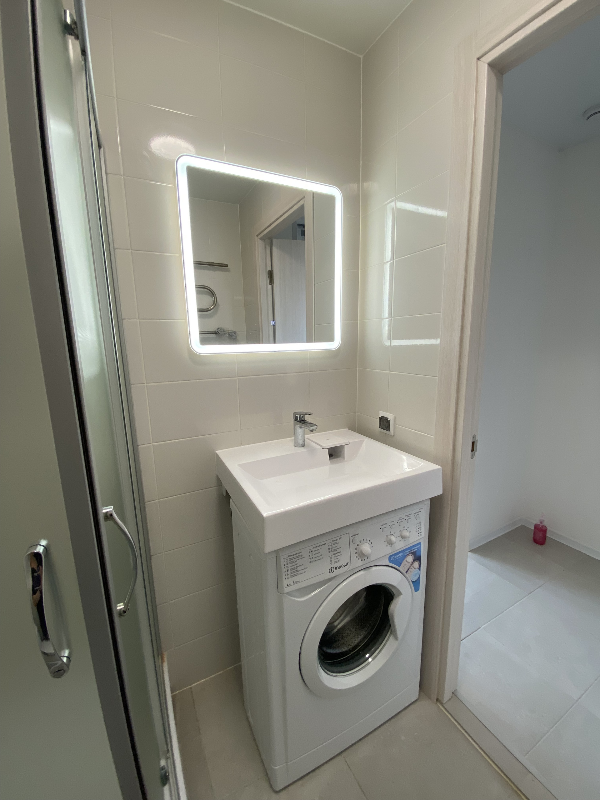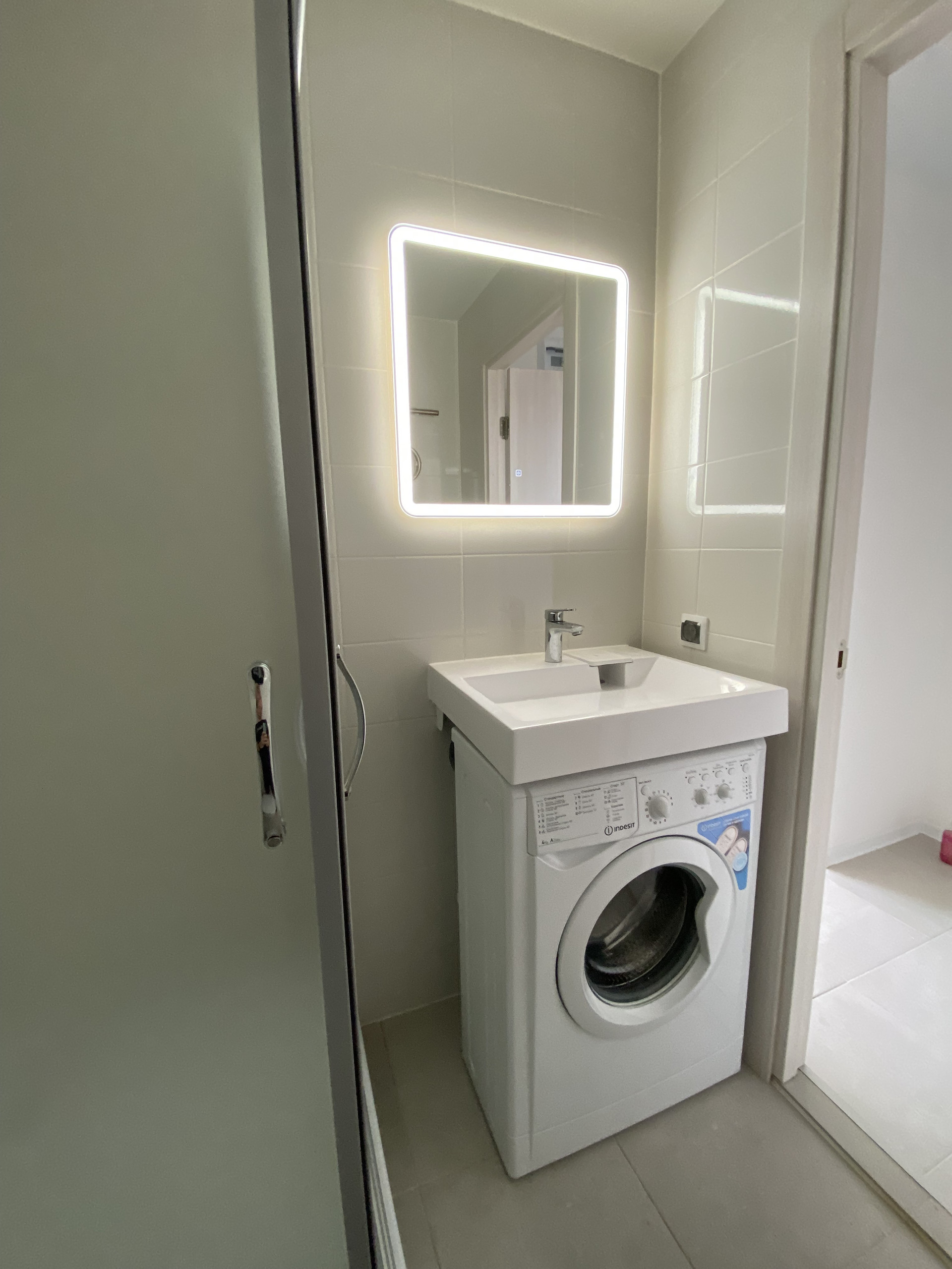 В квартире выполнен ремонт, установлена стильная кухня, барная стойка, барные комфортные стулья,  индукционная плита.   Установлена душевая кабина, новая стиральная машина, зеркало с подсветкой..