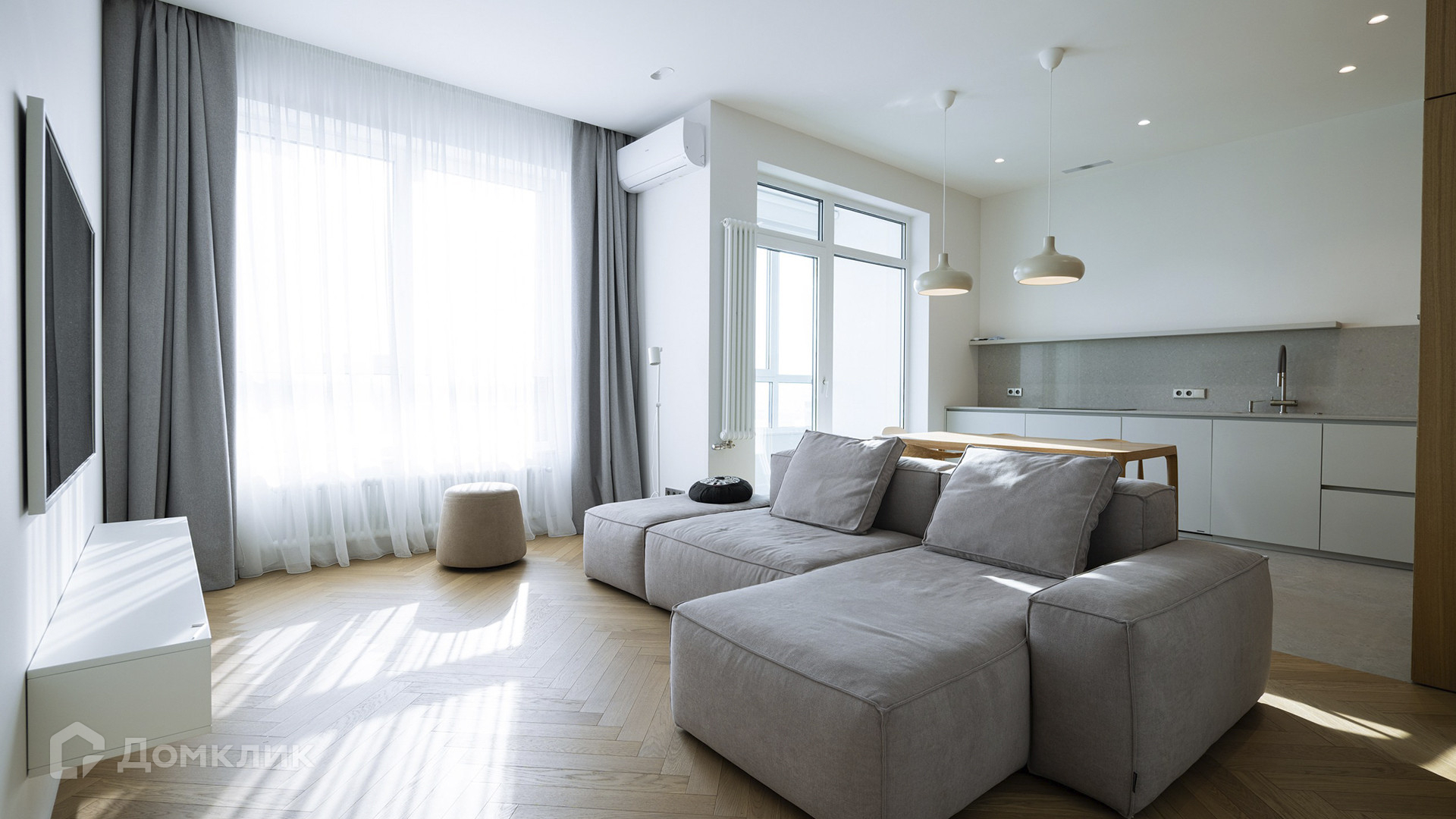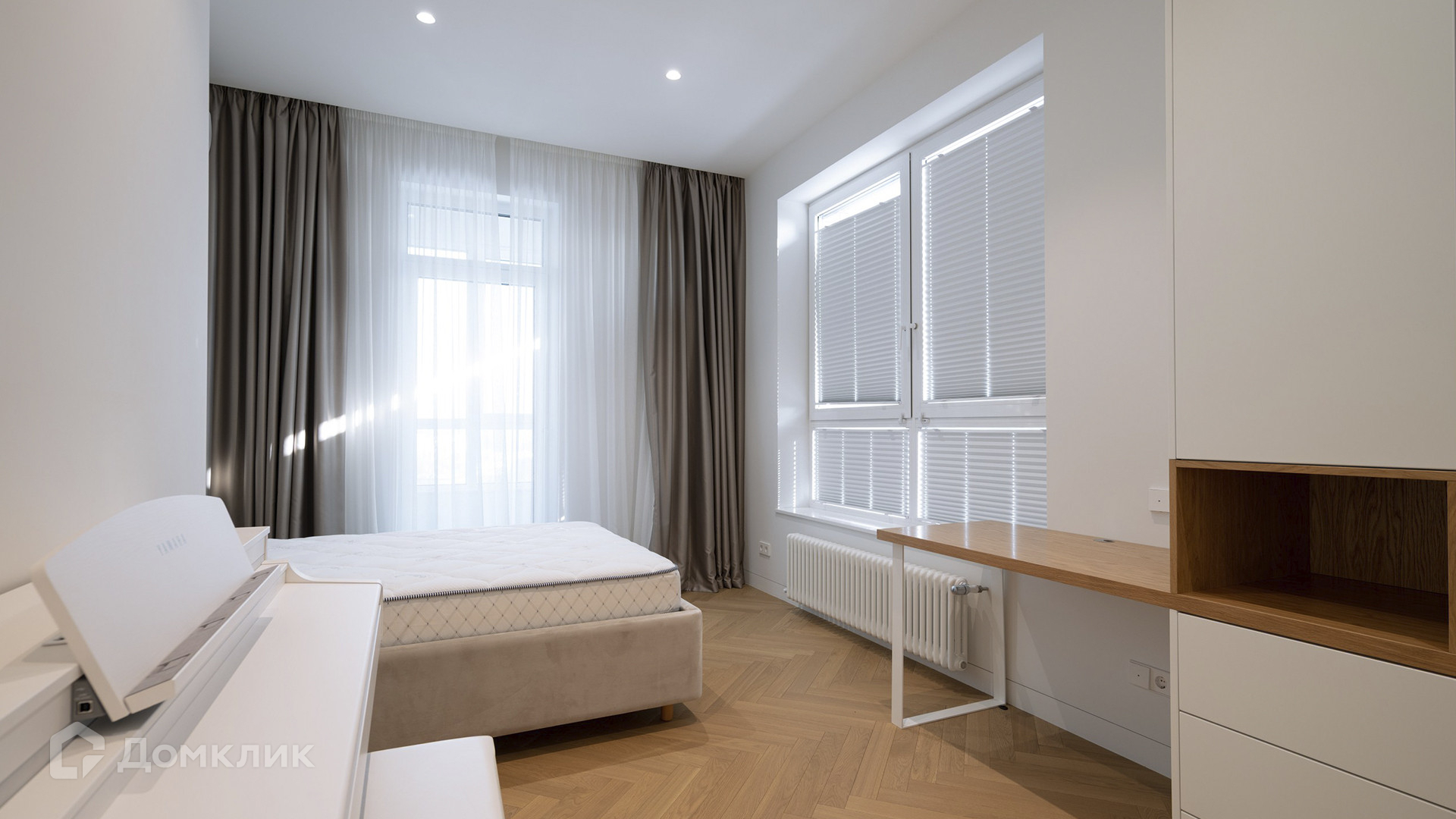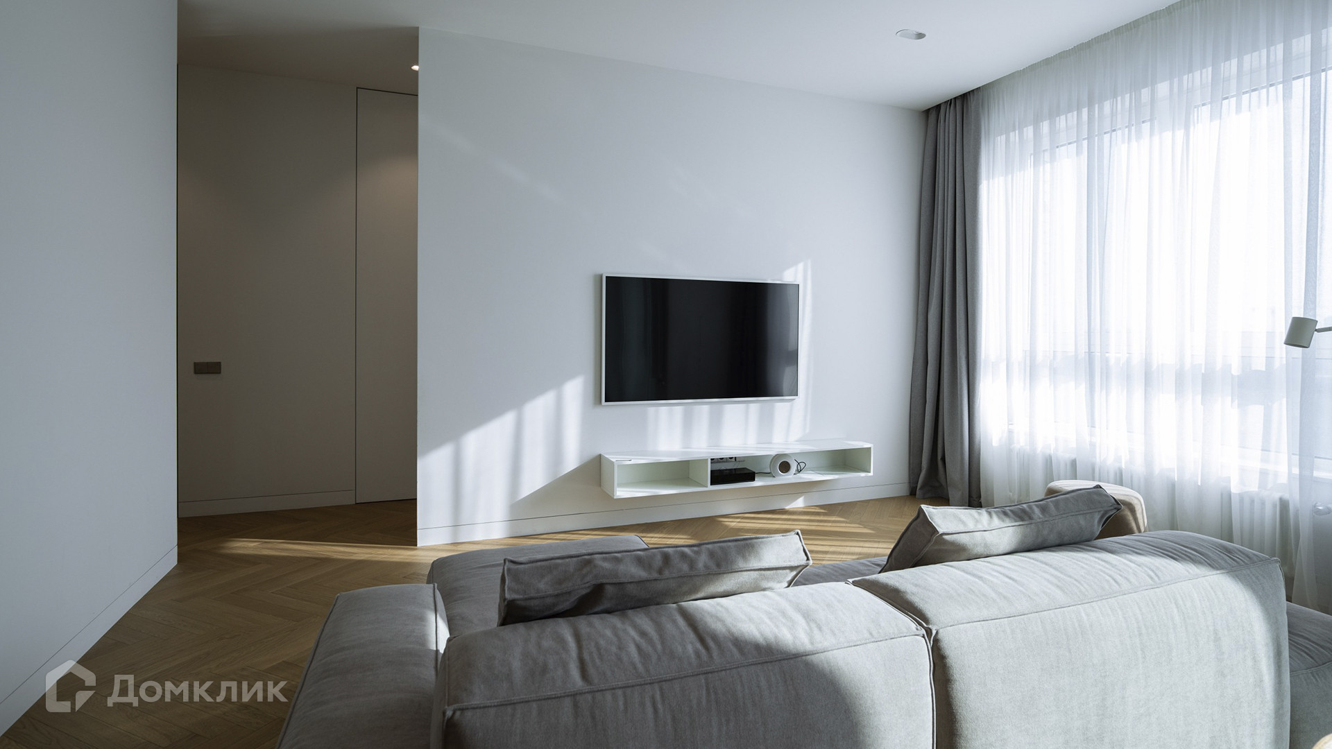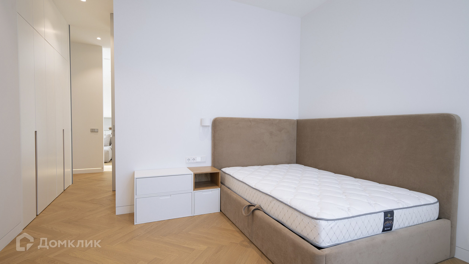 ID 218 034. Квартира с 3-мя спальнями общей площадью 103 м² в комплексе премиум-класса «Сити Парк» рядом с парком Красная Пресня. Квартира с готовой отделкой расположена на 8-м этаже в корпусе 5. Планировка: кухня-гостиная, 3 спальни, ванная комната, гостевой санузел, гардеробная, прихожая, выход на 3 лоджии. Из окон открываются виды на две стороны света.