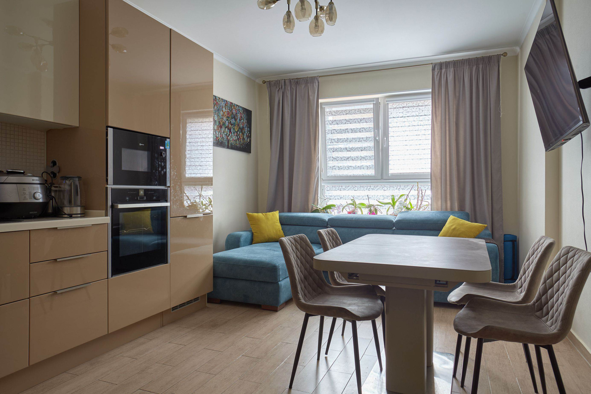 Ремонт из дорогих материалов. Мебель и техника элитных производителей ( встроенная остаётся , остальное можно обсудить). Потолки 2,85 . Не угловая . Очень теплая зимой и прохладно летом .