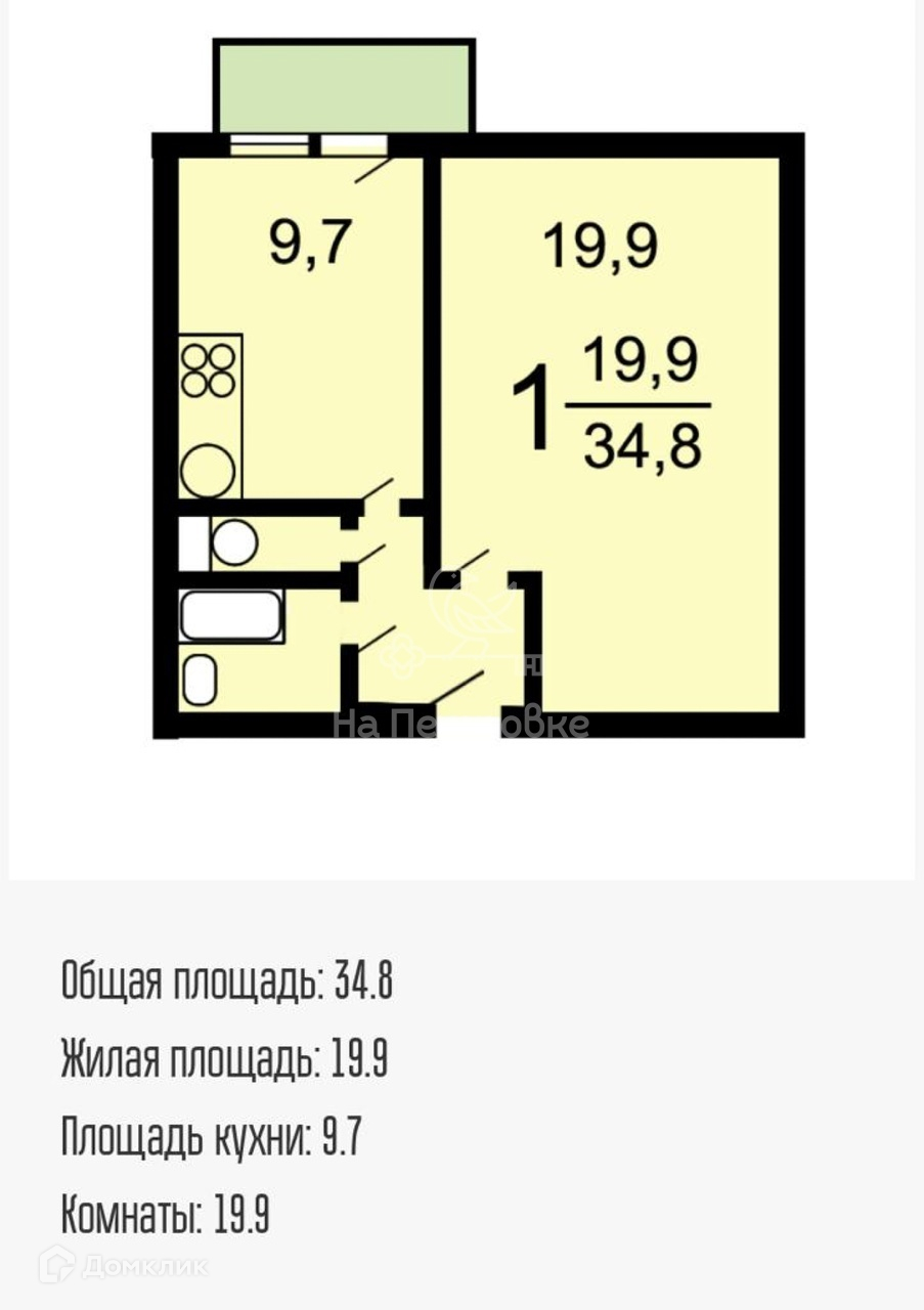 Общая площадь 34.8 м2