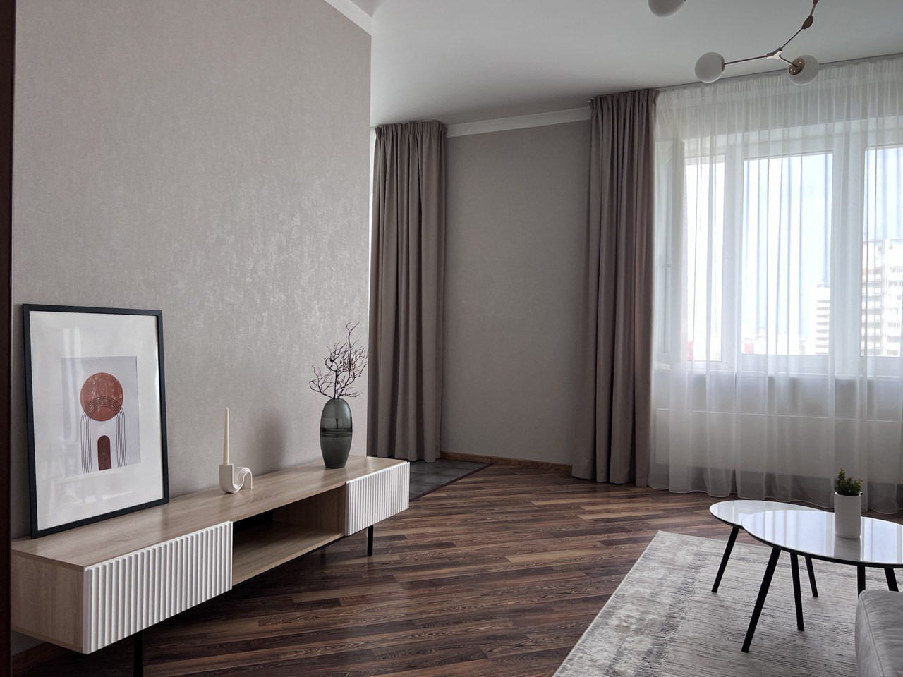 Квартира расположена на 16 этаже монолитного 29-этажного дома. Свежий ремонт. Функциональная планировка. Просторная кухня-гостиная, большая спальня, гардеробная комната и широкая утепленная лоджия. В квартире использованы качественные отделочные материалы. Все окна выходят во двор.