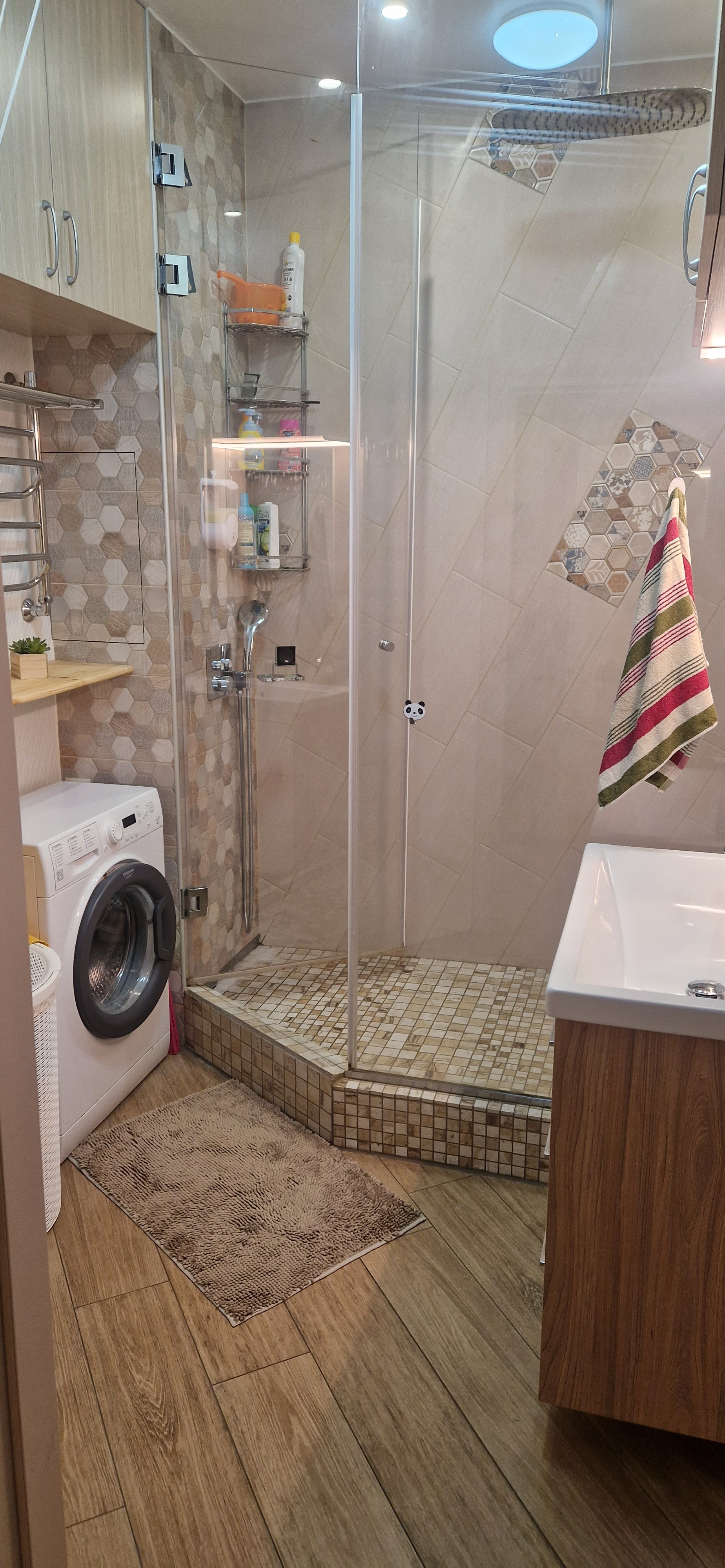 Сам отделочник, сделано все для себя, не экономили на материалах: электрика Legrand/ABB (розеток с двойным запасом, выключатели минимум из трех точек, датчики движения на свет, реле на вытяжках + встроенные разные умные реле/светильники/люстры/кондиционер/шторы/телевиз оры/радионяни/колонки/розетки на Алисе); сантехника GROHE (с термостатами/сенсорами и пр); вентиляция Systemair (EC); центральный/встроенный пылесос; на канализации обратные клапана HL, ламинат Alloc. Душевая шикарная с тропическим душем. В центре зал с кинотеатром, разведен звук 5. 1 качественный. Водонагреватель на три фазы мощный для летней профилактики. Шумоизоляция по всем канонам: не по стене, а отдельной конструкцией, плюс пирог многослойный по всему потолку. Шкафов и мест хранения с запасом, практично спланированы и не мешают.