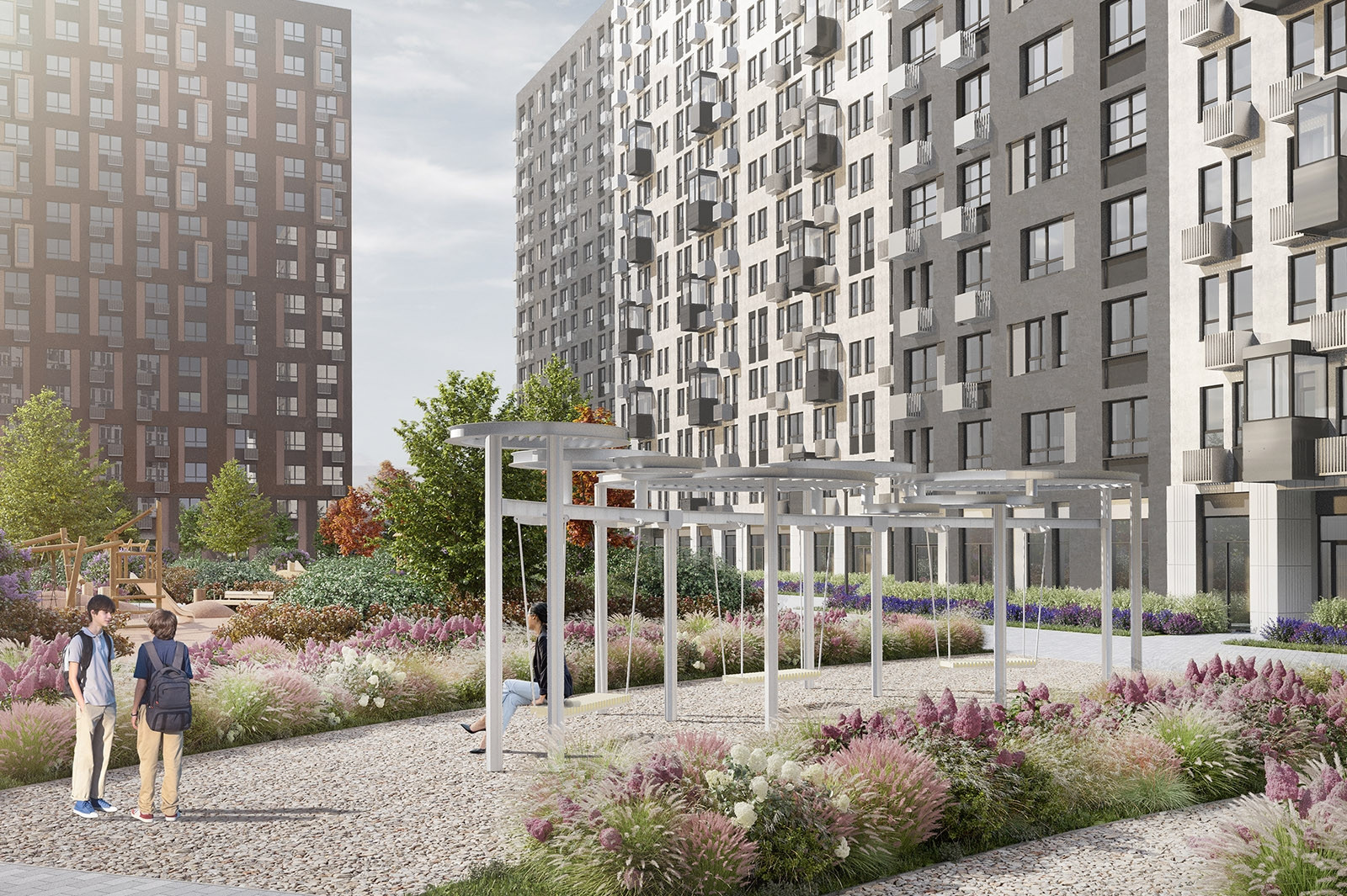 СОЦИАЛЬНАЯ ИНФРАСТРУКТУРА будет развиваться вместе с районом: для жителей будет построено 8 детских садов и 4 школы. На первых этажах жилых домов откроются магазины и пекарни, парикмахерские и кафе.