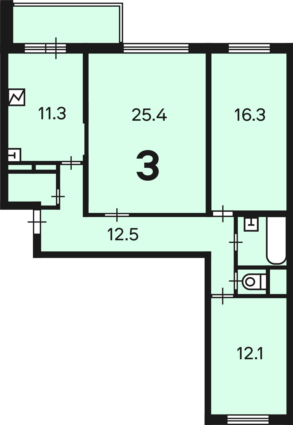 Количество комнат 3
