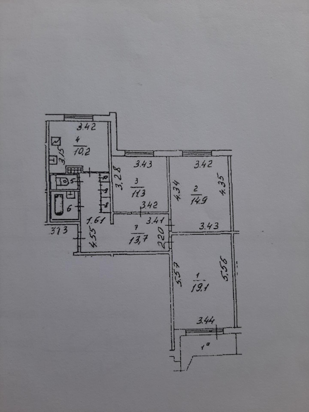 Жилая площадь 45.3 м2