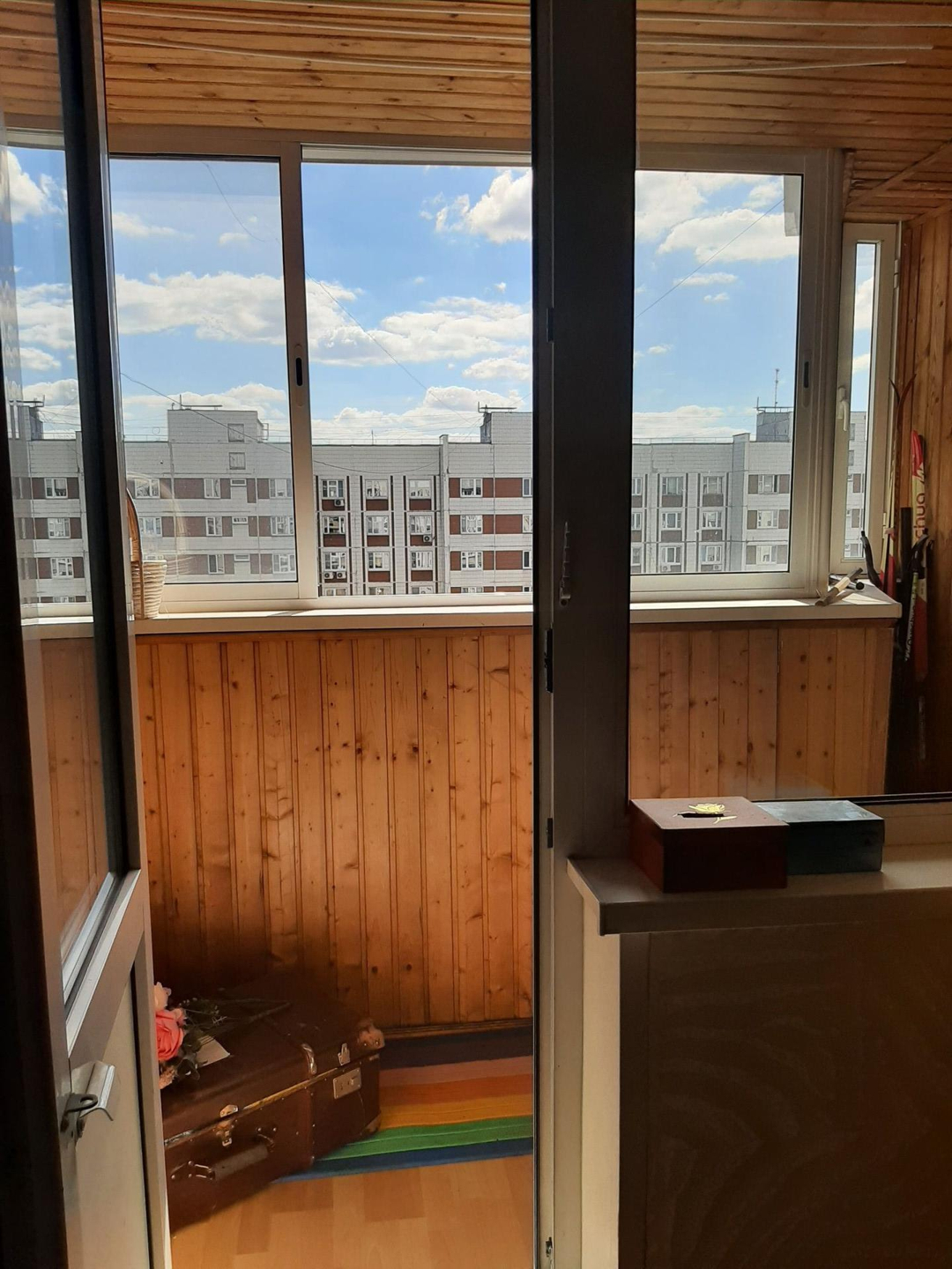 Большой, застеклённый  балкон. Кухня 10.2 кв.м.