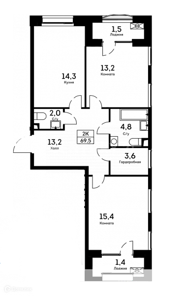 Балкон, лоджия 2 лоджии
