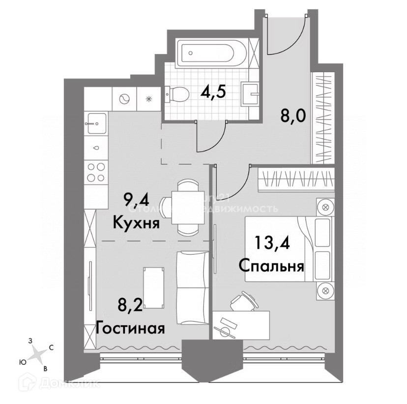 Общая площадь 43 м2