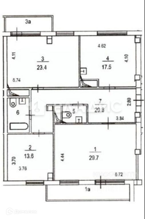 Жилая площадь 67.2 м2