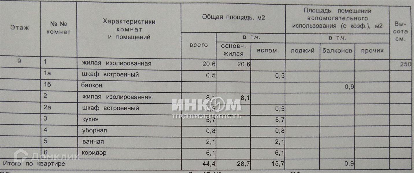 Жилая площадь 28.7 м2