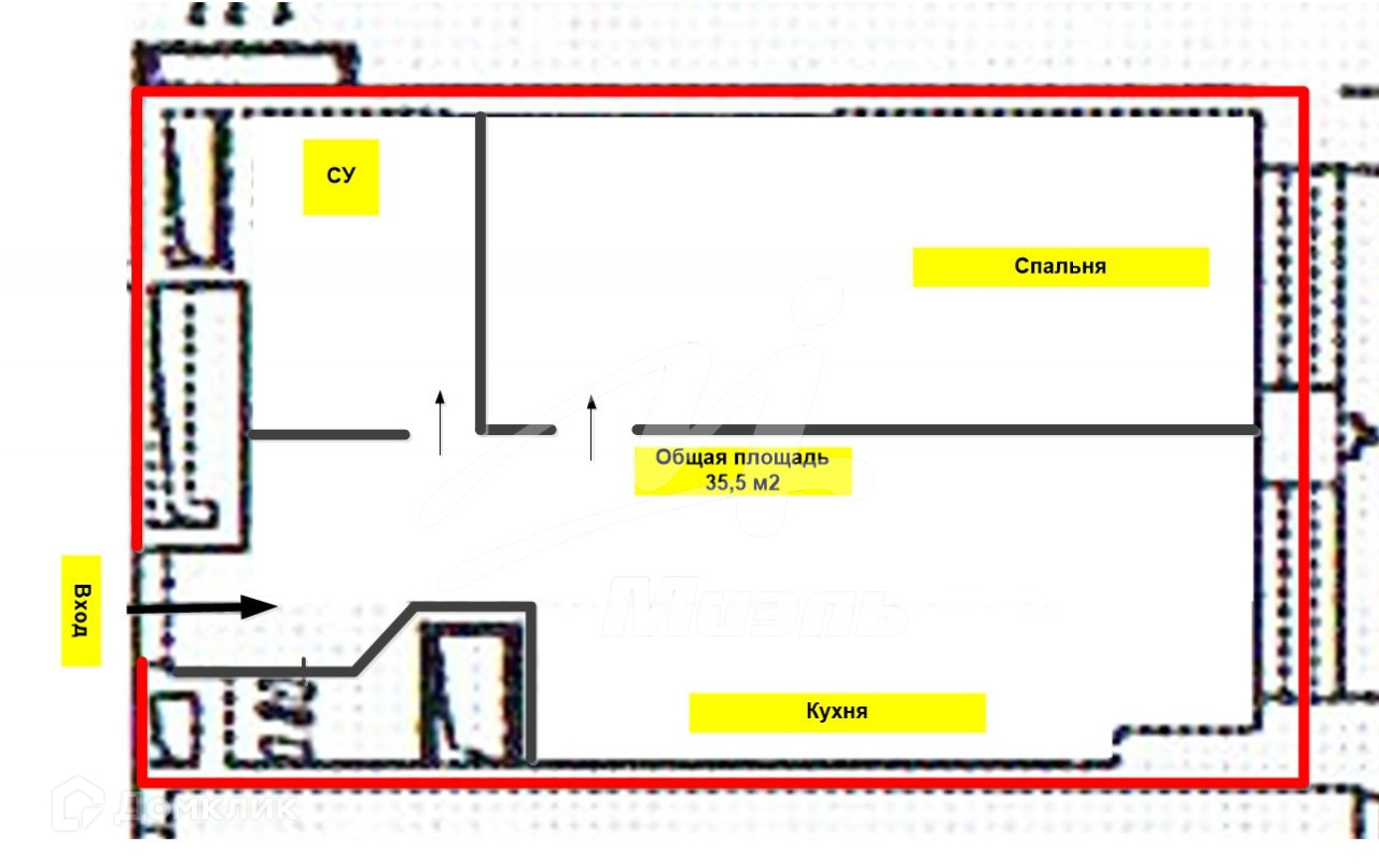 Общая площадь 35.6 м2