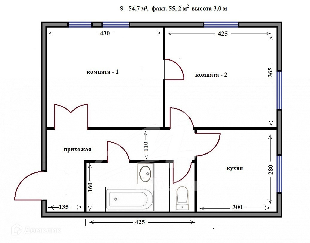 Общая площадь 54.7 м2